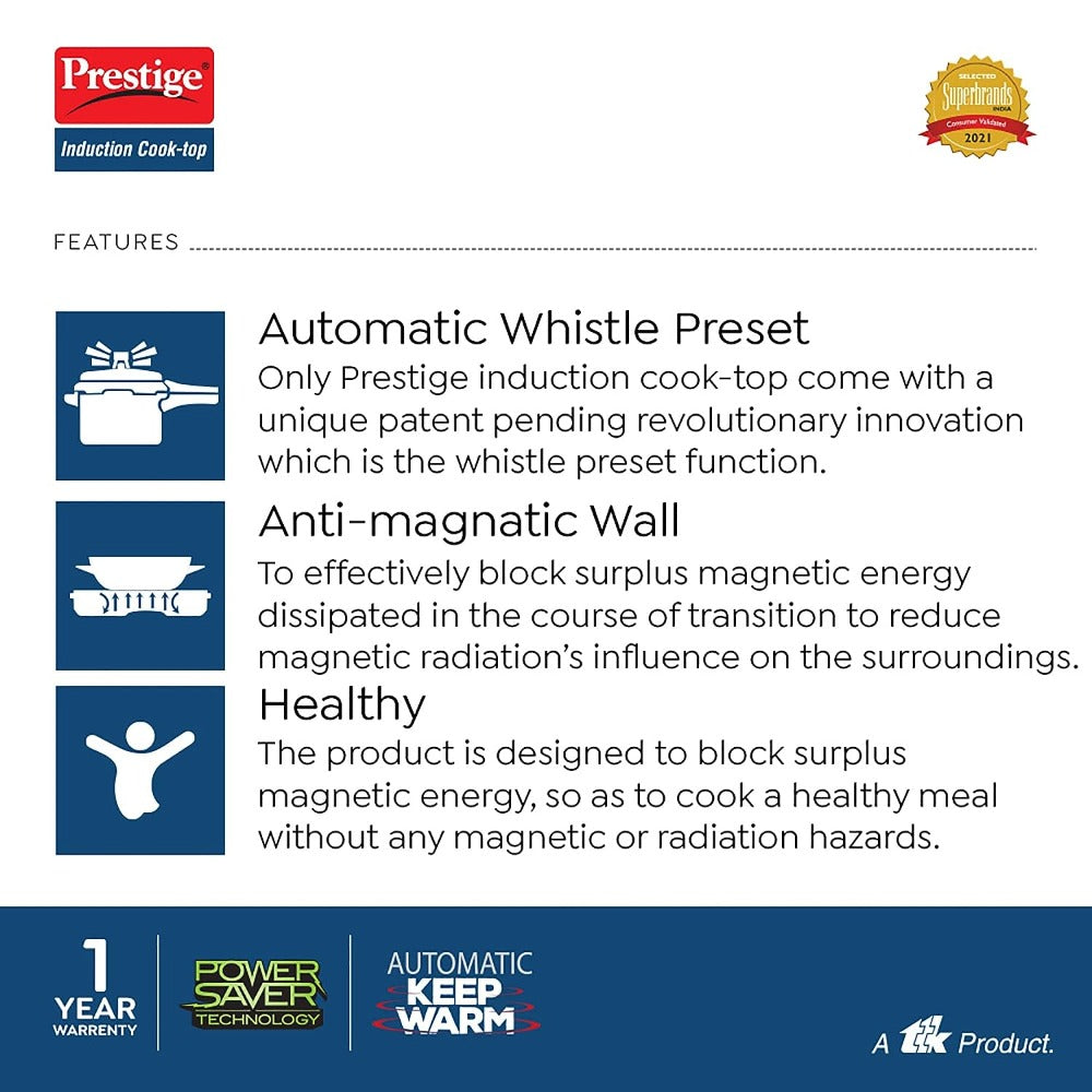 Prestige PIC 20 WIZ 1600 Watt Induction Cooktop with Automatic Whistle Counter | Black