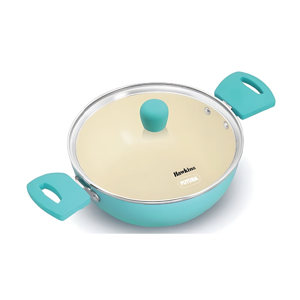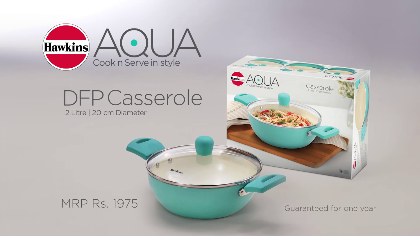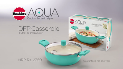 Hawkins Futura Aqua Ceramic DFP Casserole with Glass Lid | Gas & Induction Compatible | Ivory | 1 Pc
