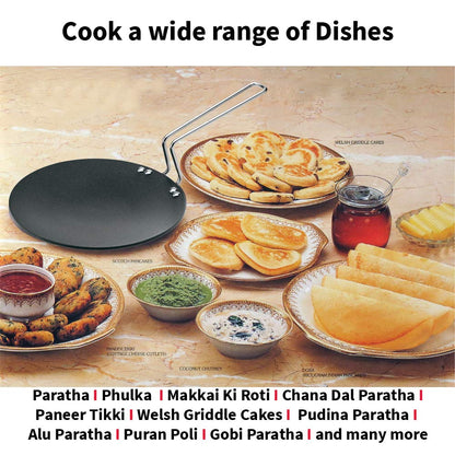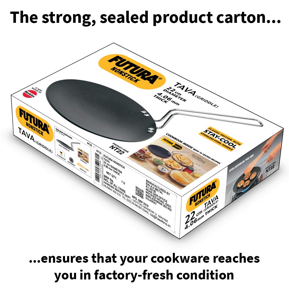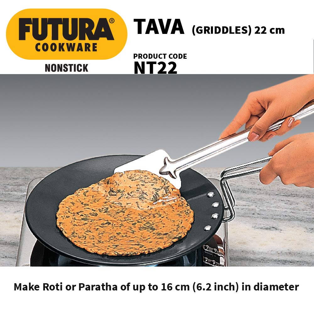 • Hawkins Futura Nonstick Tava can cook all the foods that can be cooked in Hard Anodised Tava with less or no oil or butter, if required. The Futura Flat Nonstick Tava are particularly preferred for cooking popular South Indian snacks such as dosa and uttapam.