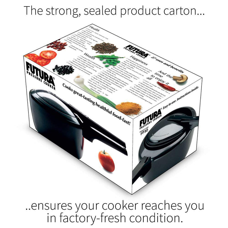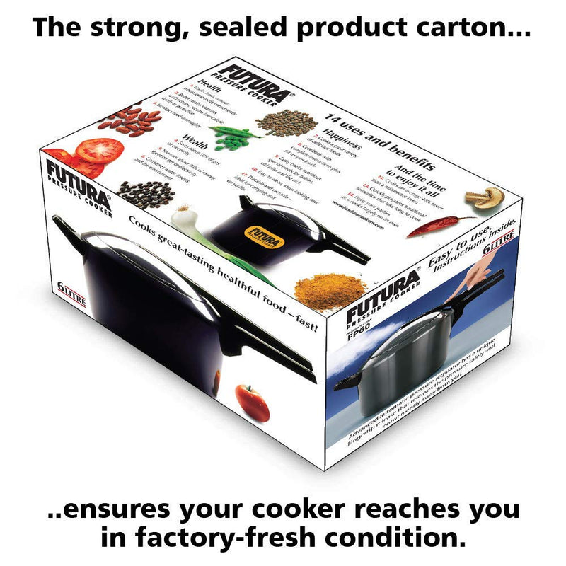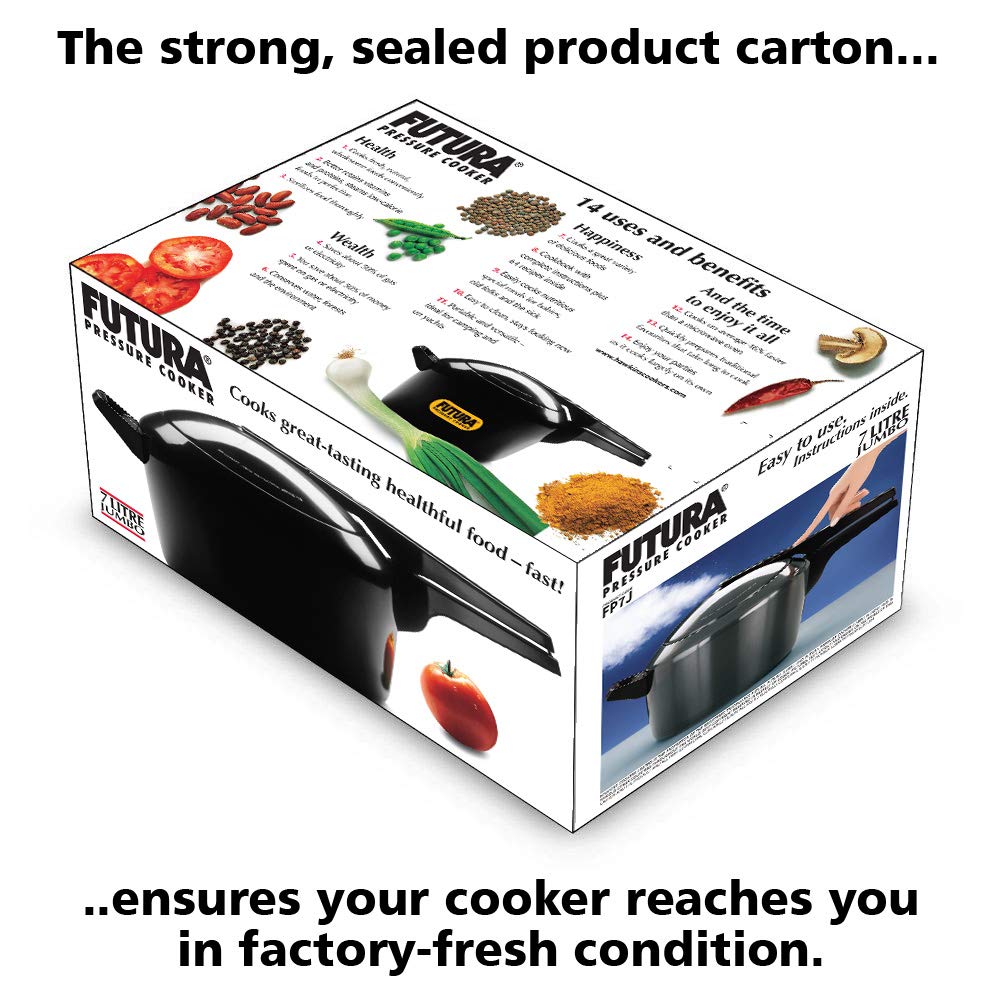 - The beautiful, durable black finish given by 60 microns thick hard anodizing has two benefits. It makes the pressure cooker absorb heat faster making it more energy-efficient.