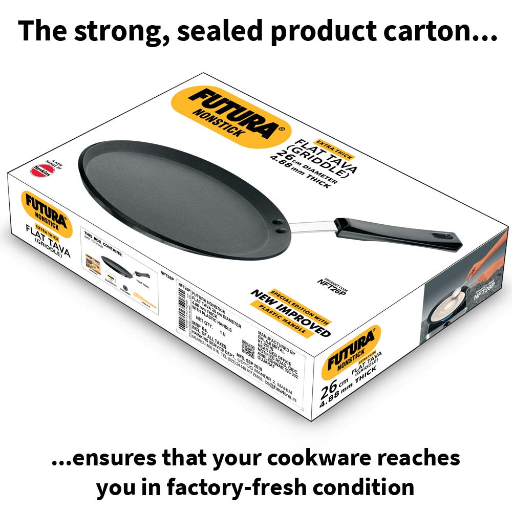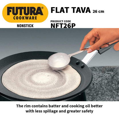 Hawkins Futura Nonstick Flat Tava with Plastic Handle, Thickness 4.88 mm || Diameter: 26 cm, 30 cm
