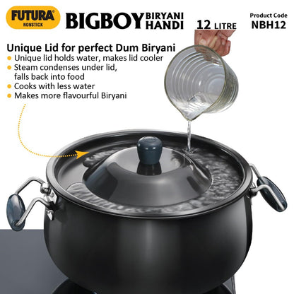 Hawkins Futura Non Stick Hard Anodised 12 Litre BigBoy Biryani Handi with Lid - NBH12 | Black