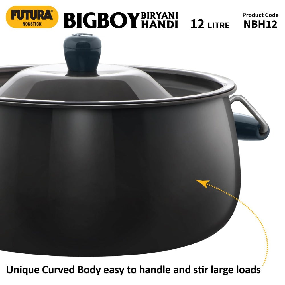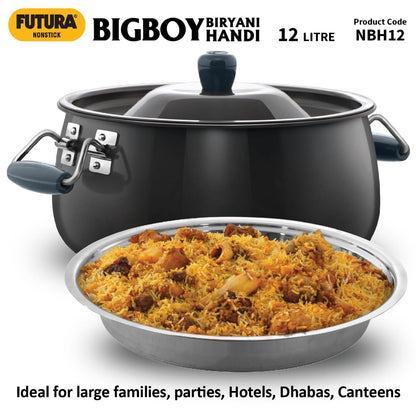 Hawkins Futura Non Stick Hard Anodised 12 Litre BigBoy Biryani Handi with Lid - NBH12 - 1
