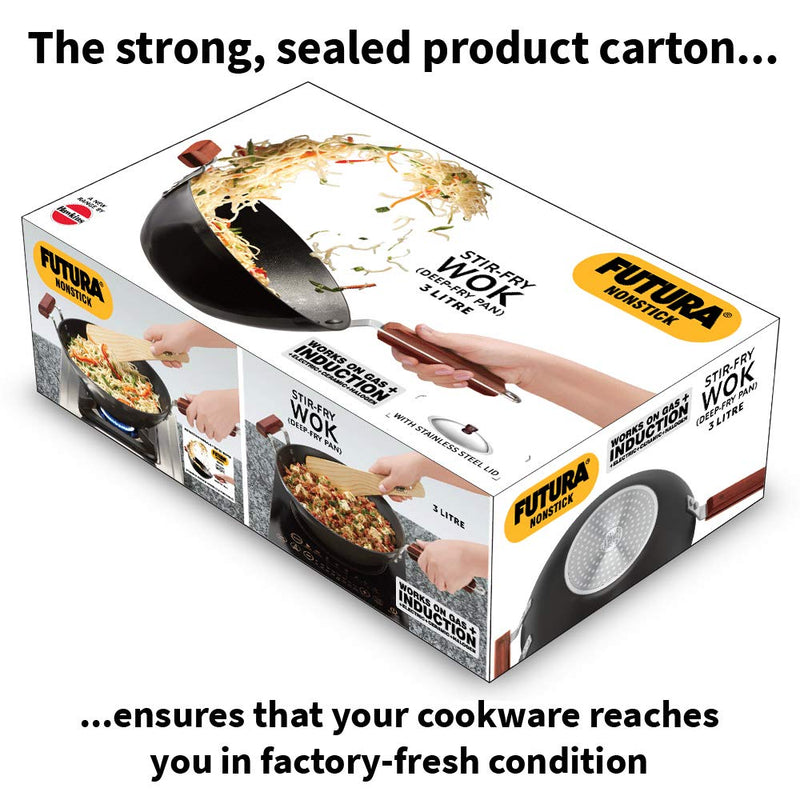 Hawkins Futura Nonstick 3 Litre Stir Fry Pan with Stainless Steel Lid | Gas & Induction Compatible | Black