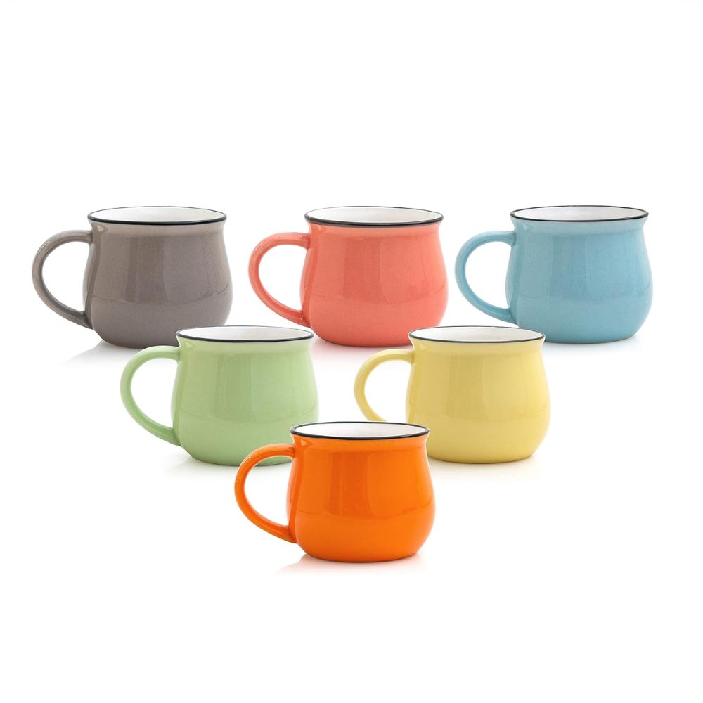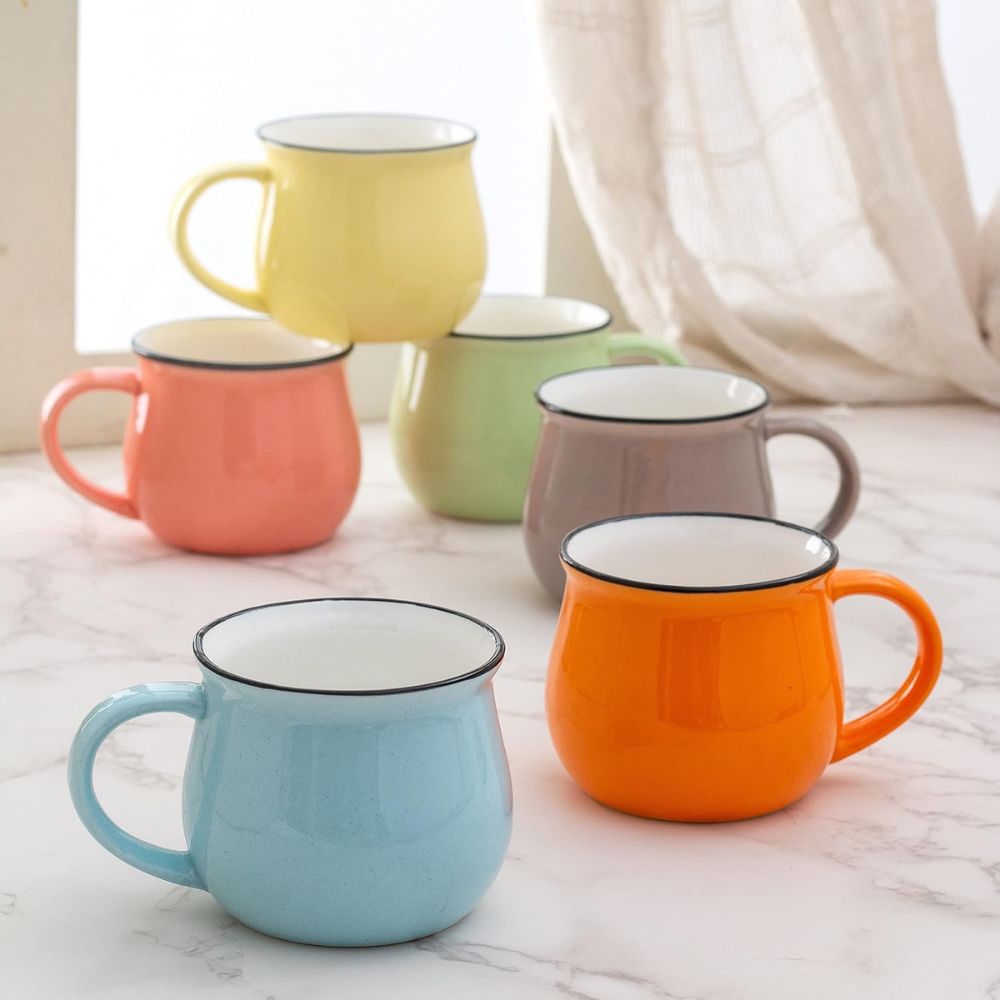 JCPL Ceramic Solid Donald 160 ML Coffee Mug Set | Multicolor | Set of 6 Pcs