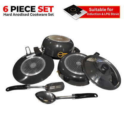 - Introducing our premium 6 Piece Induction Based Hard Anodised Cookware set - the perfect addition to any kitchen! Made with the strongest material, this cookware set is designed to withstand the toughest cooking challenges.