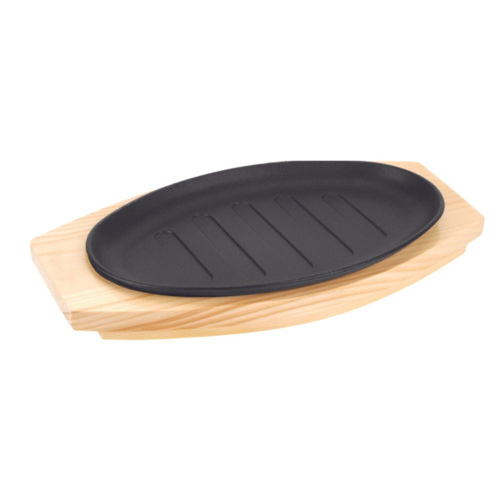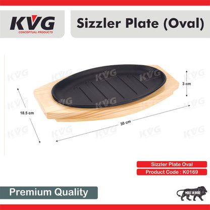 - Flaunt your cooking skills and serve some hot and spicy sizzlers to your guests in this oval shaped sizzler. Food tastes yummier when presented beautifully, isn’t it? Add authenticity to your food, while impressing one and all. Premium sturdy wooden trivet/coaster included. Can be used for Grilled Fish, Fried rice, Stir-fry, Steak, Pizza, Fajita, Omelets, Pasta and more.