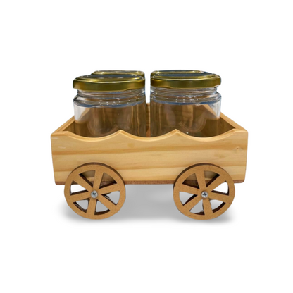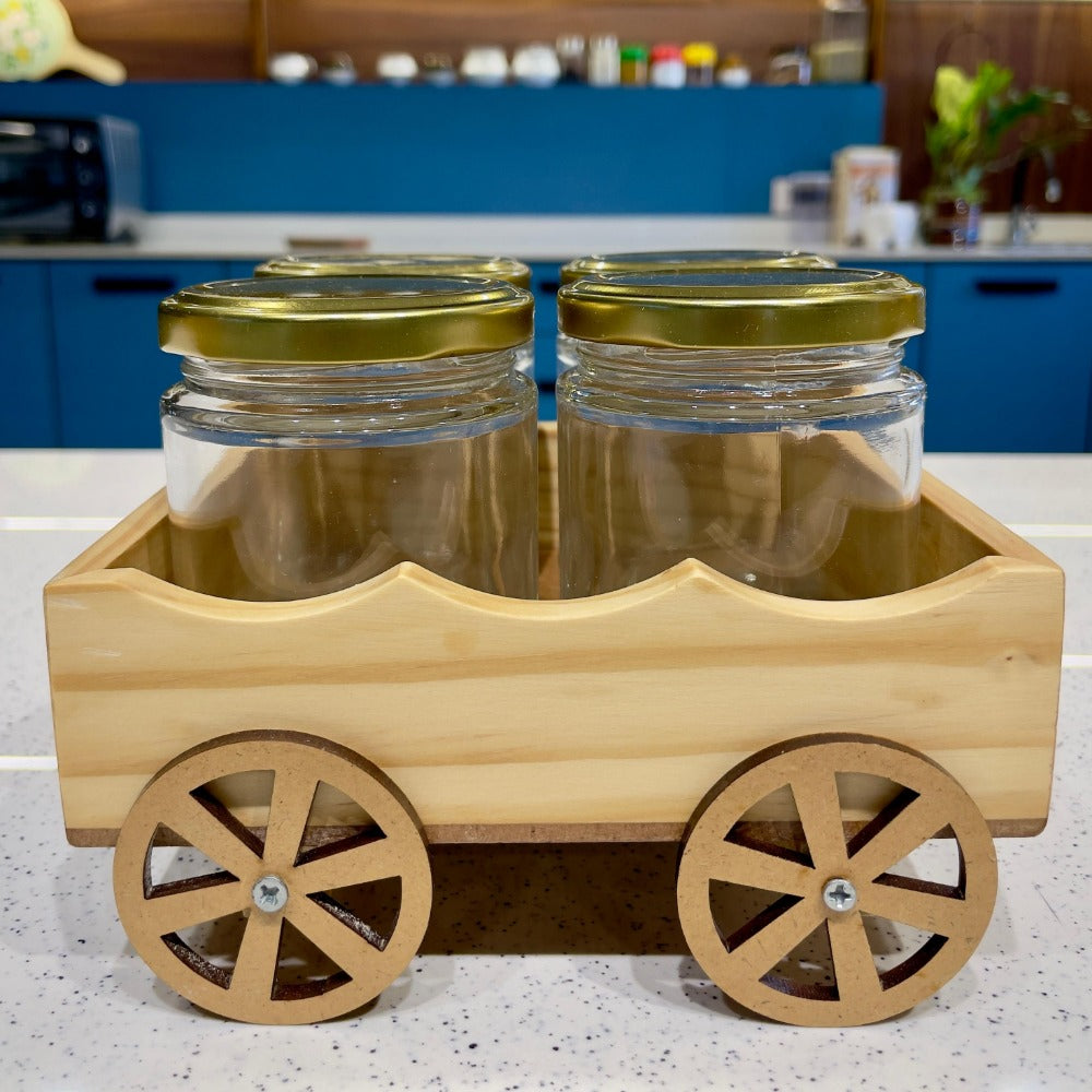 KVG Pine Wood Cart Big Bottle Stand with Containers | 4 Pc