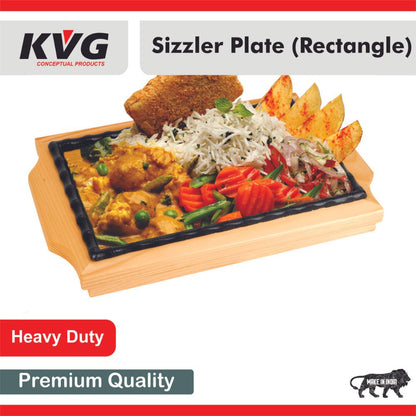 - Heat-proof wooden tray makes it easy to transfer the hot sizzler plate for serving and protects tables and countertops. Specially treated wooden base and oil coated casting plate, for safety, hygiene and durability and corrosion resistance.