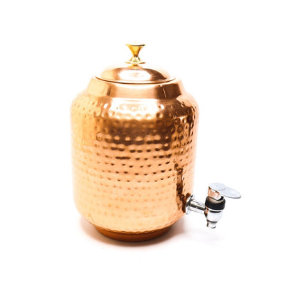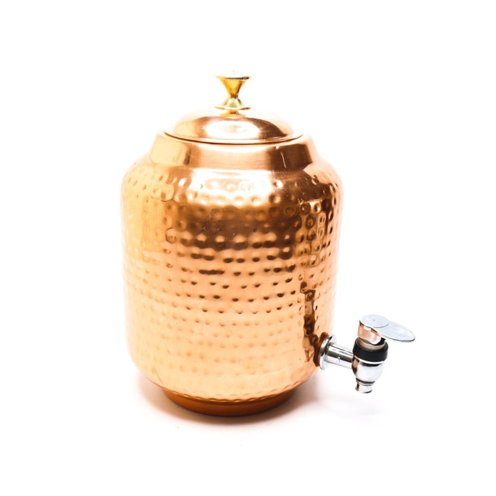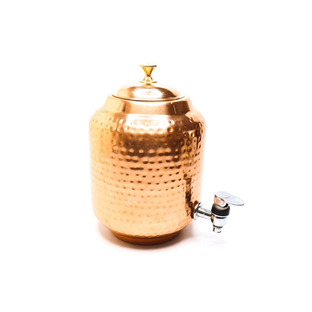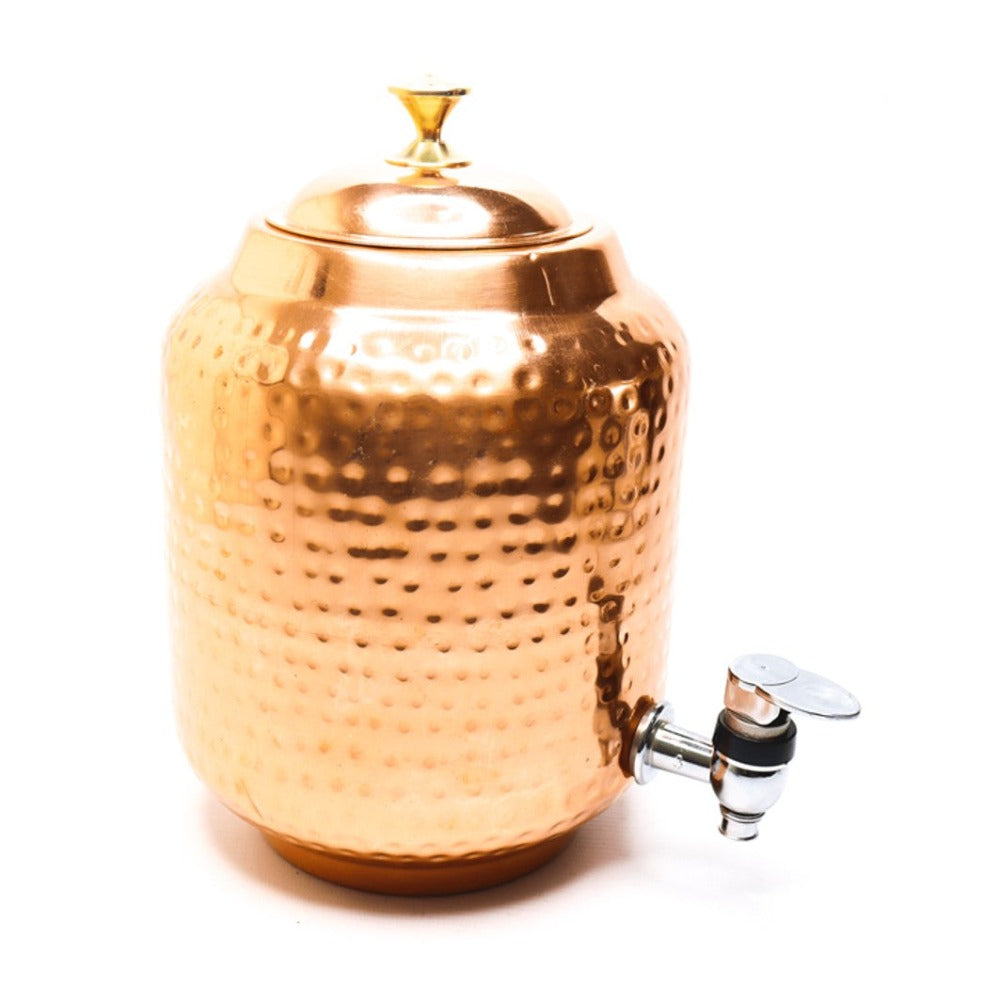 - The copper water dispenser is a uniquely handcrafted vessel meant for storing water.