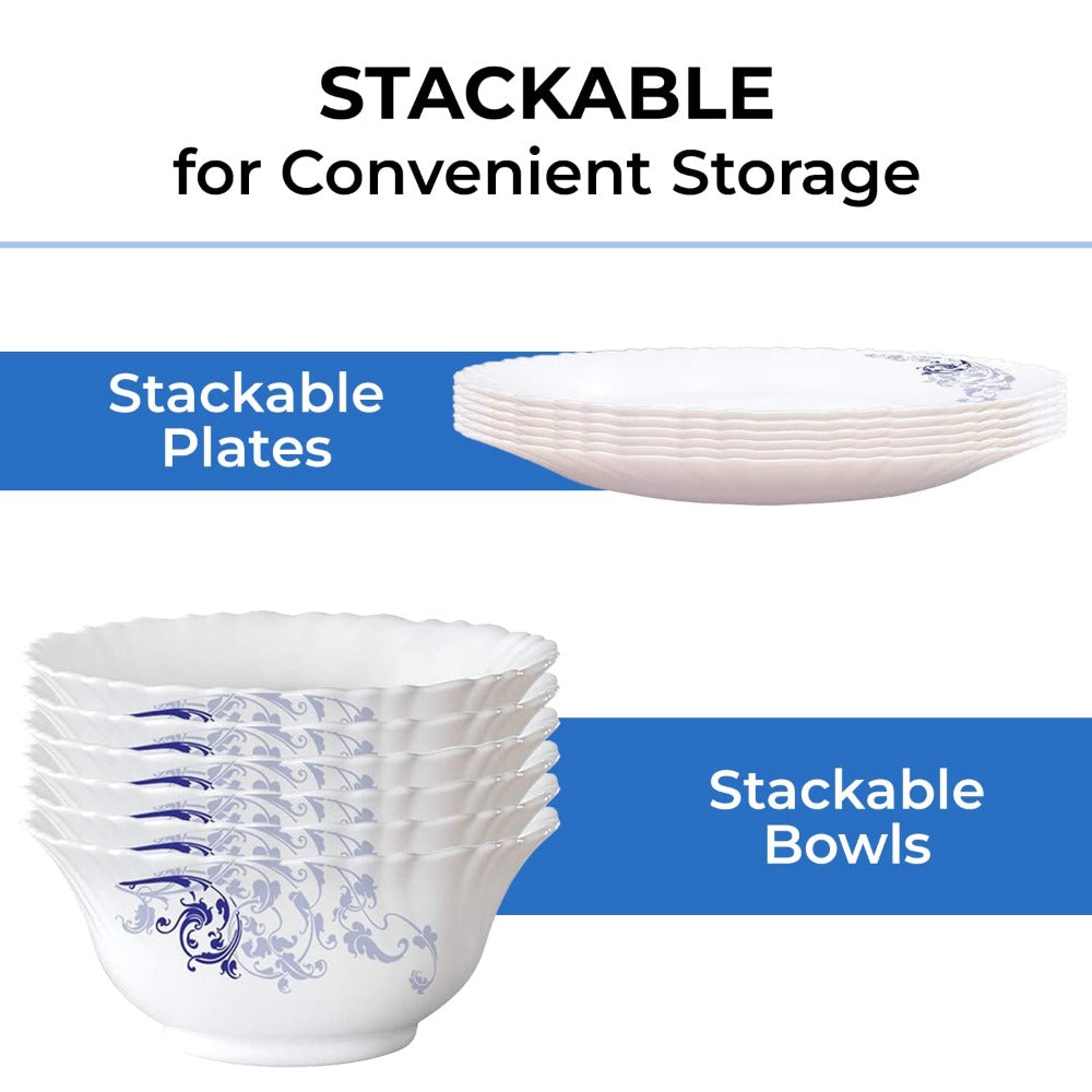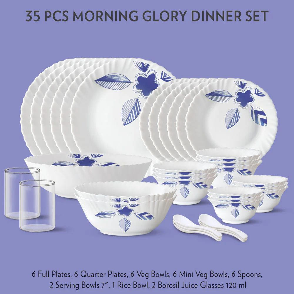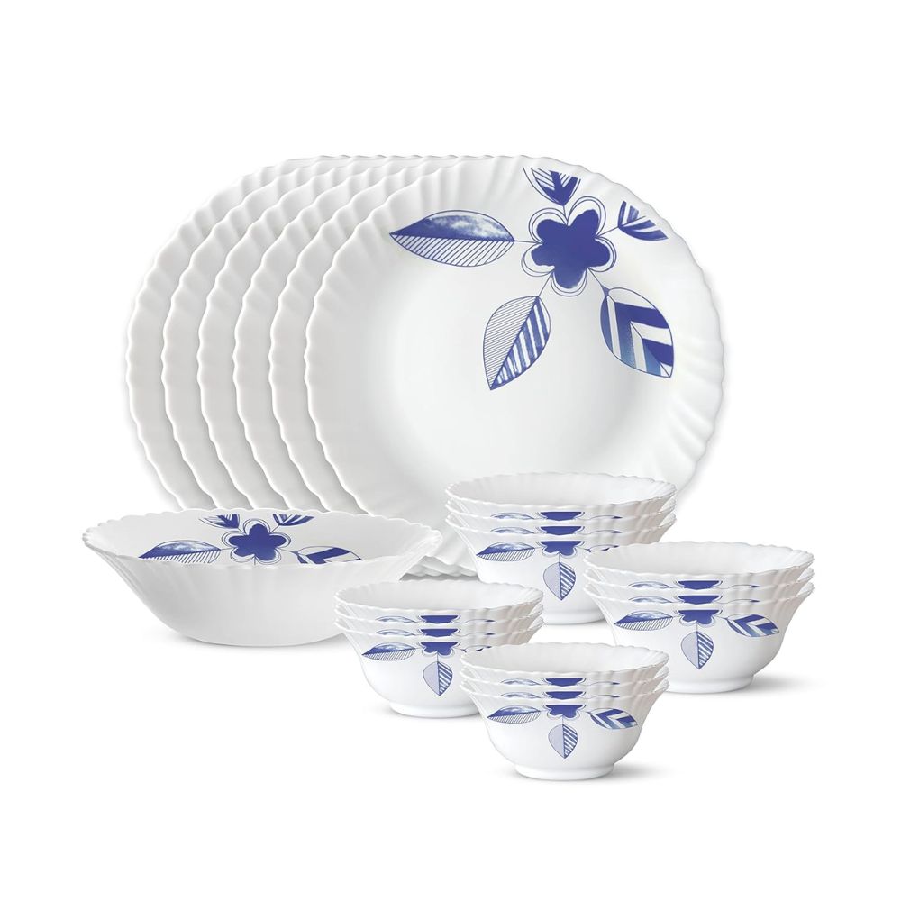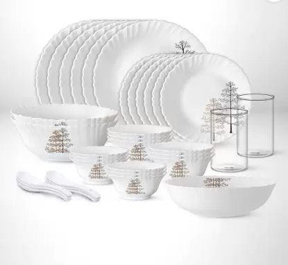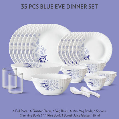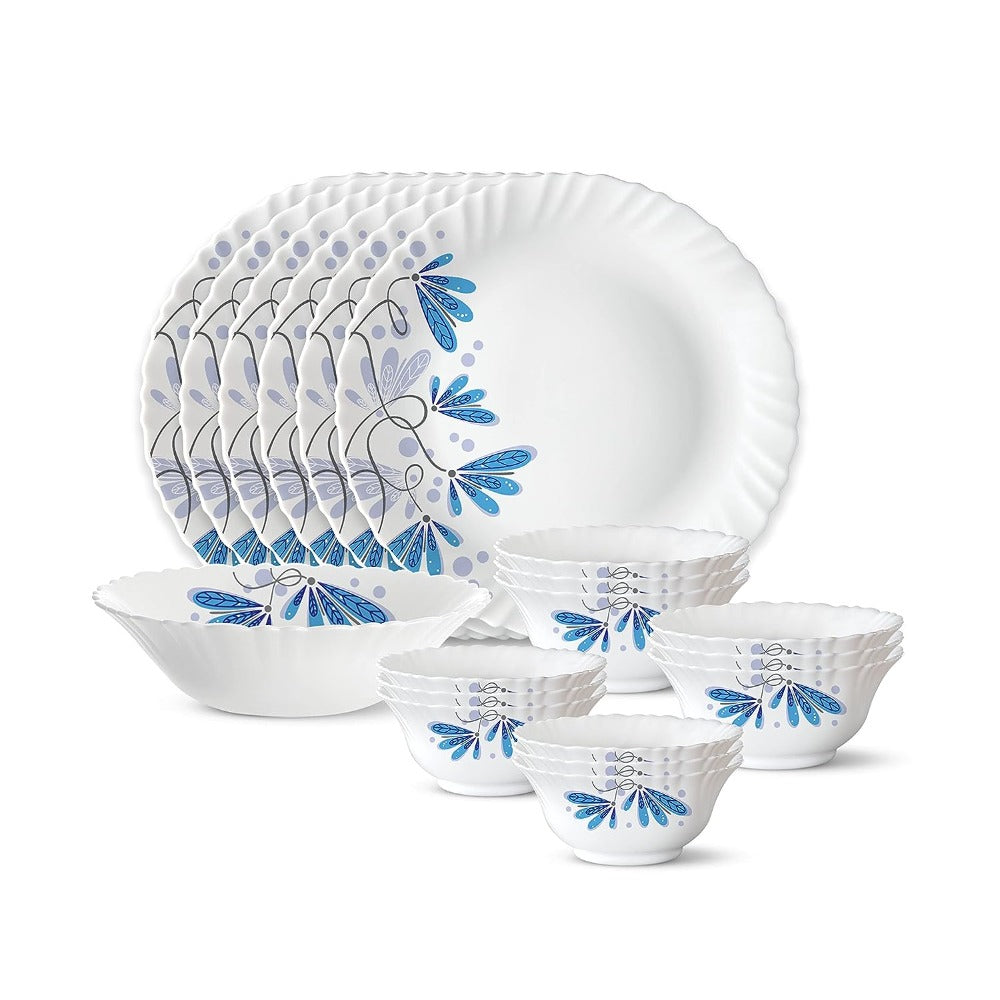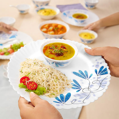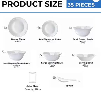 Larah by Borosil - Silk Series Opal ware Dinner Set | White | Set of 35 Pcs