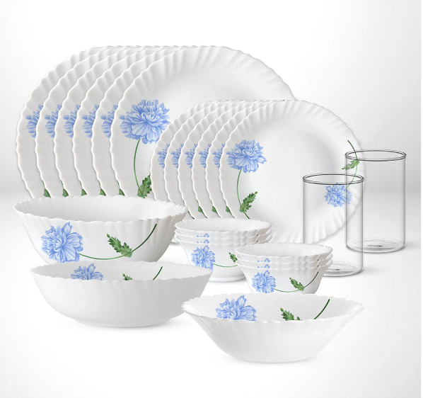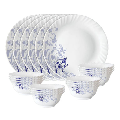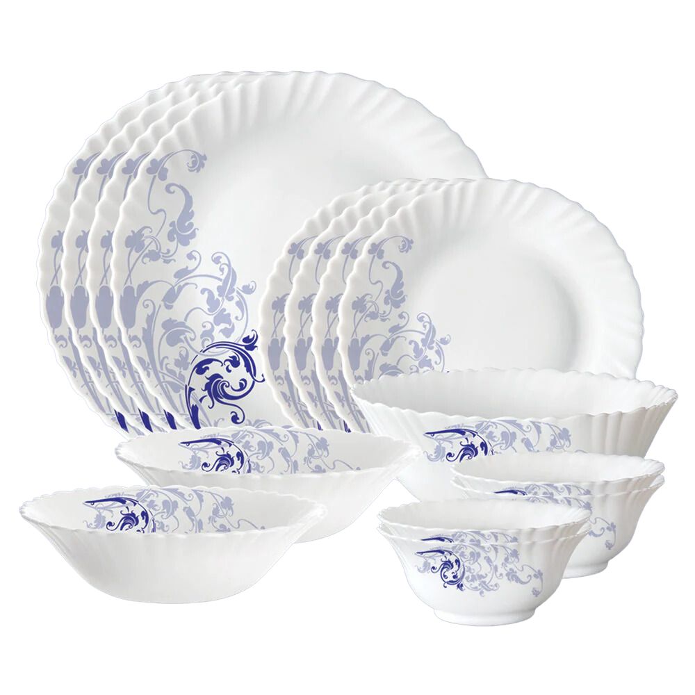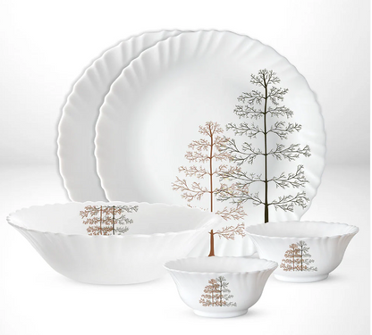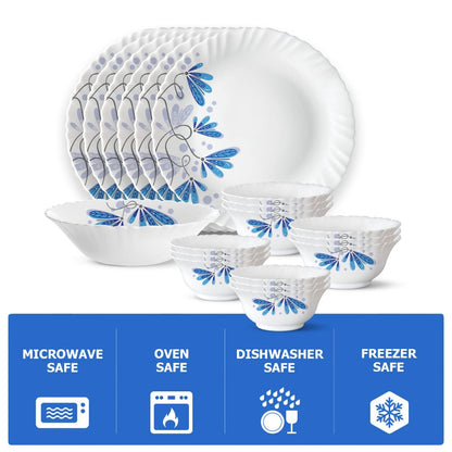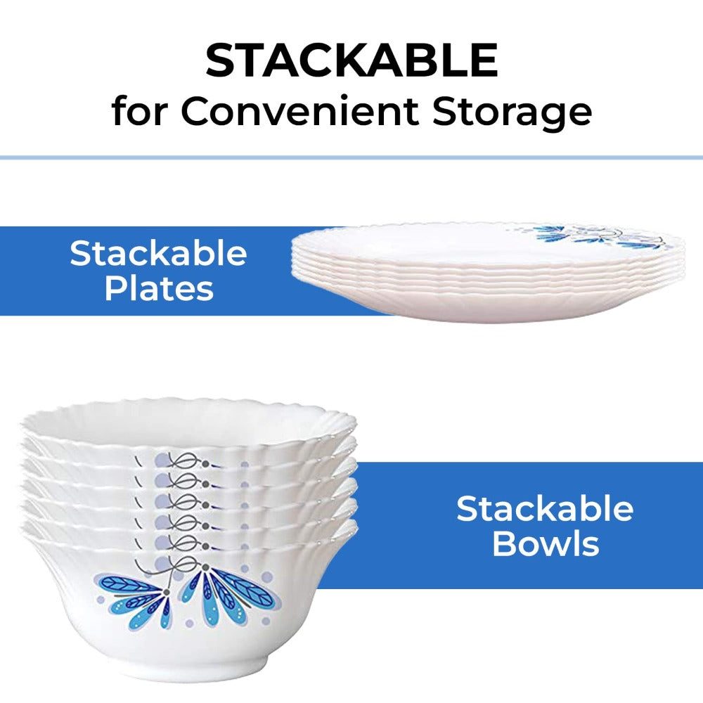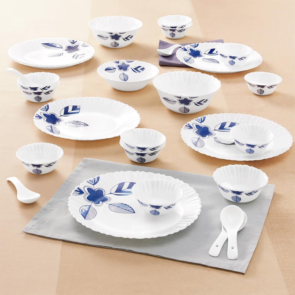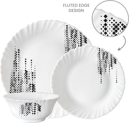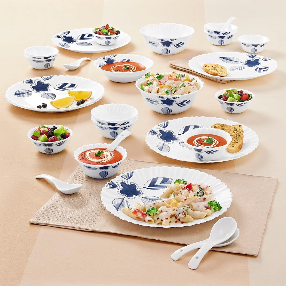 Larah by Borosil - Silk Series Opal ware Dinner Set | White | Set of 35 Pcs