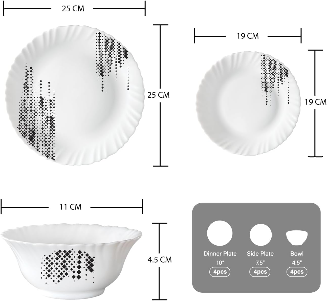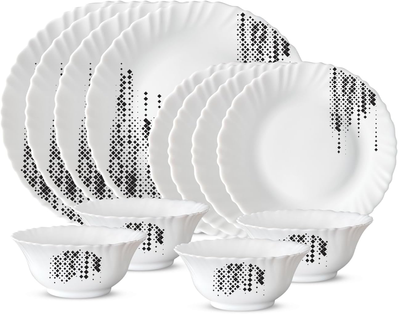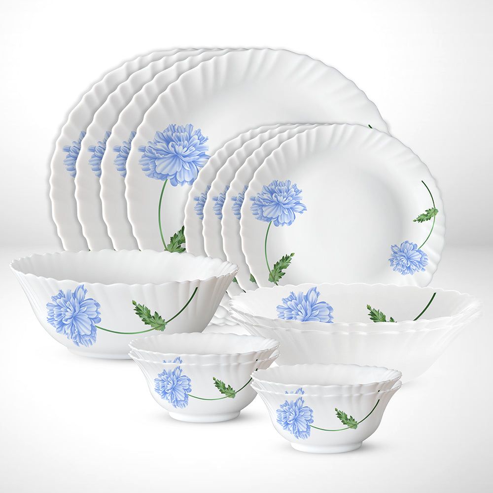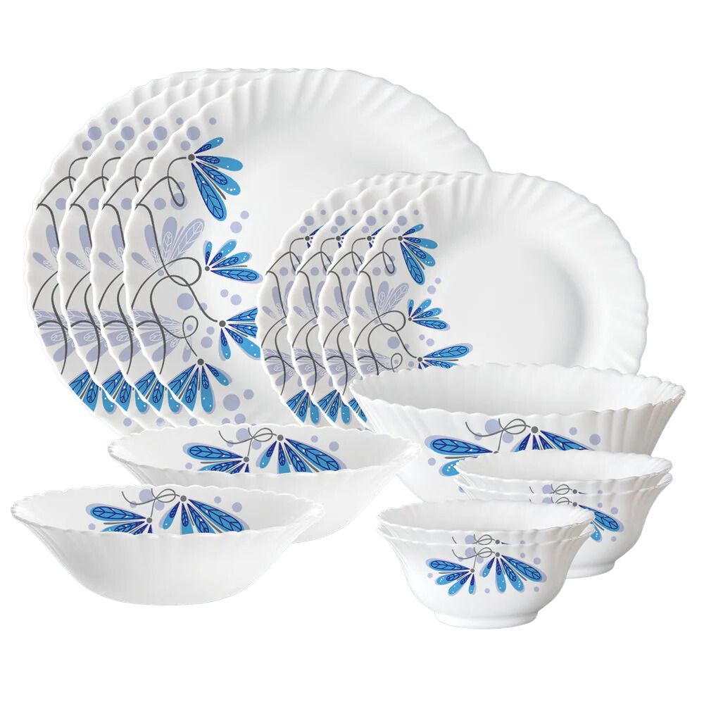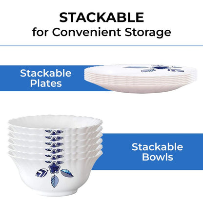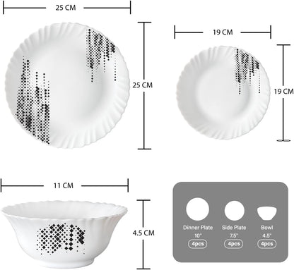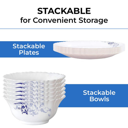 Larah by Borosil - Silk Series Opal ware Dinner Set | White | Set of 35 Pcs