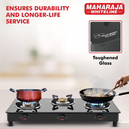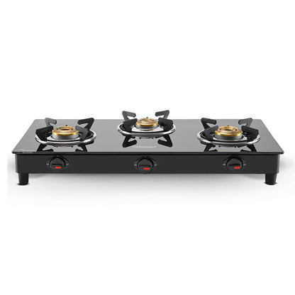Maharaja Whiteline Belenus Neo 3 Burner Glass Top Gas Stove | Black