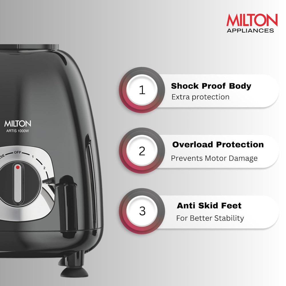 - The Milton Artis is a high-performance 1000 W mixer grinder engineered for Indian kitchens.