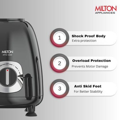 Milton Artis 1000 Watts Mixer Grinder with 3 Jars | Black