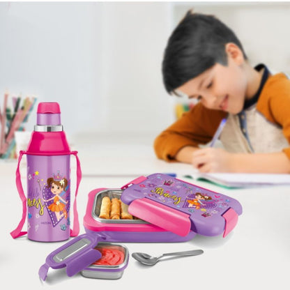 - This Gift set is a perfectly sized lunch box and bottle combo for the kids to carry to school, picnic, outdoors, etc.