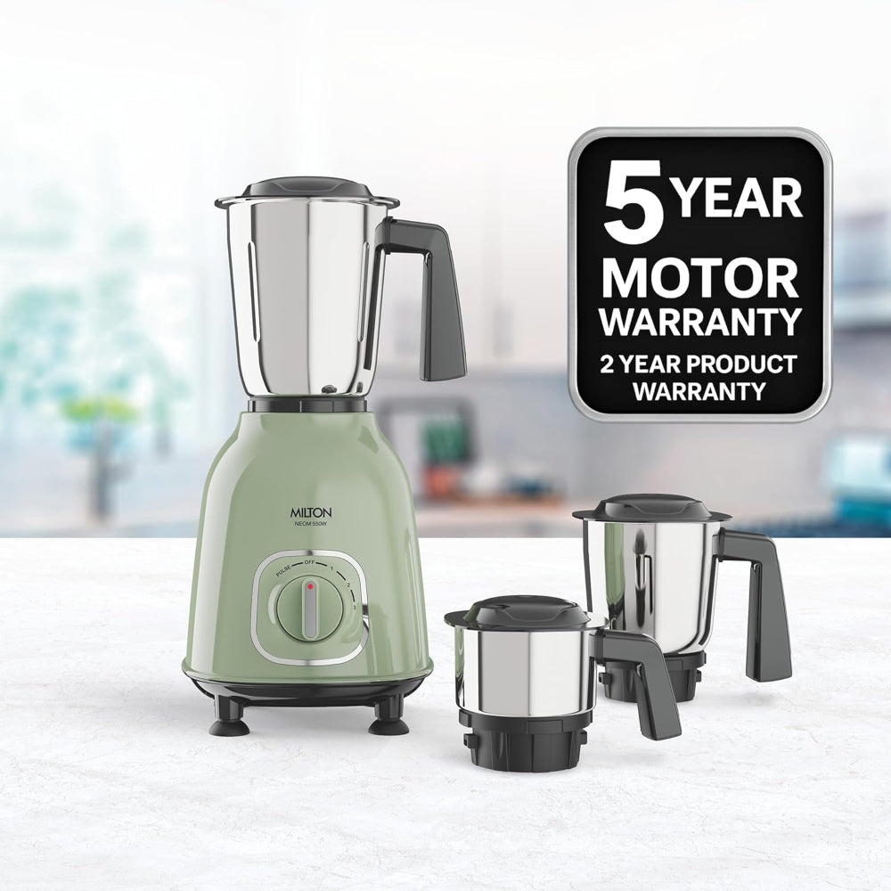 Milton Neom 550 Watts Mixer Grinder with 3 Jars | Pale Green