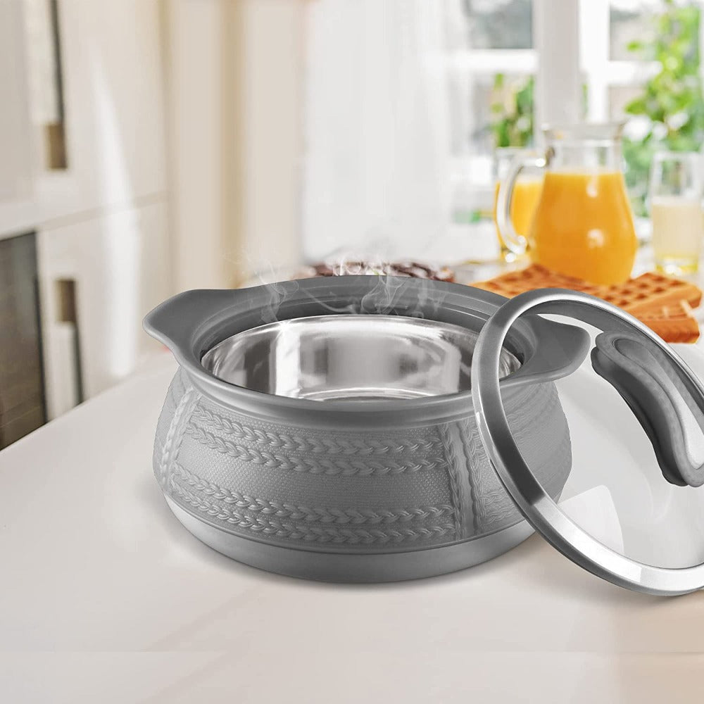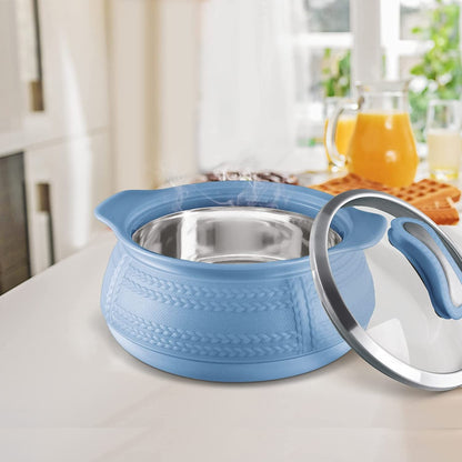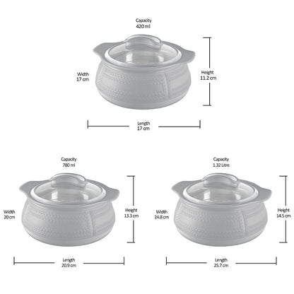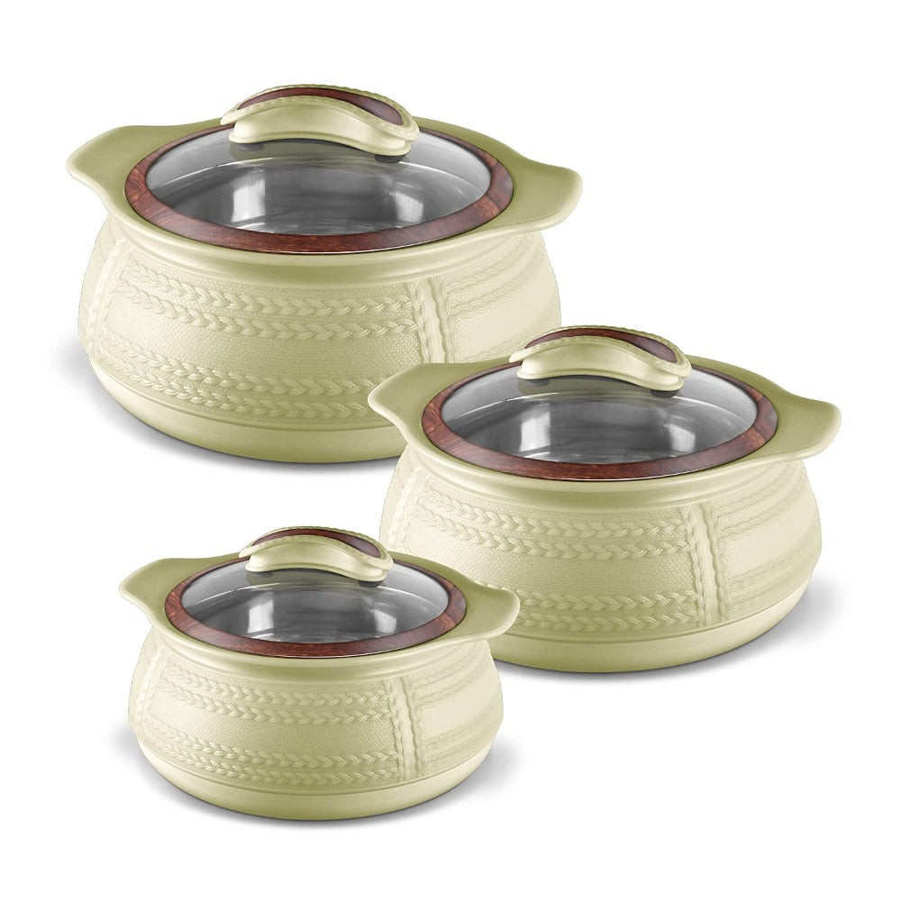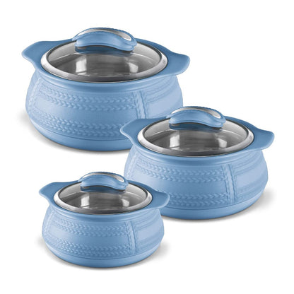 Milton Weave Junior Insulated Inner Stainless Steel Casserole with Glass Lid Set | Set of 3 Pcs