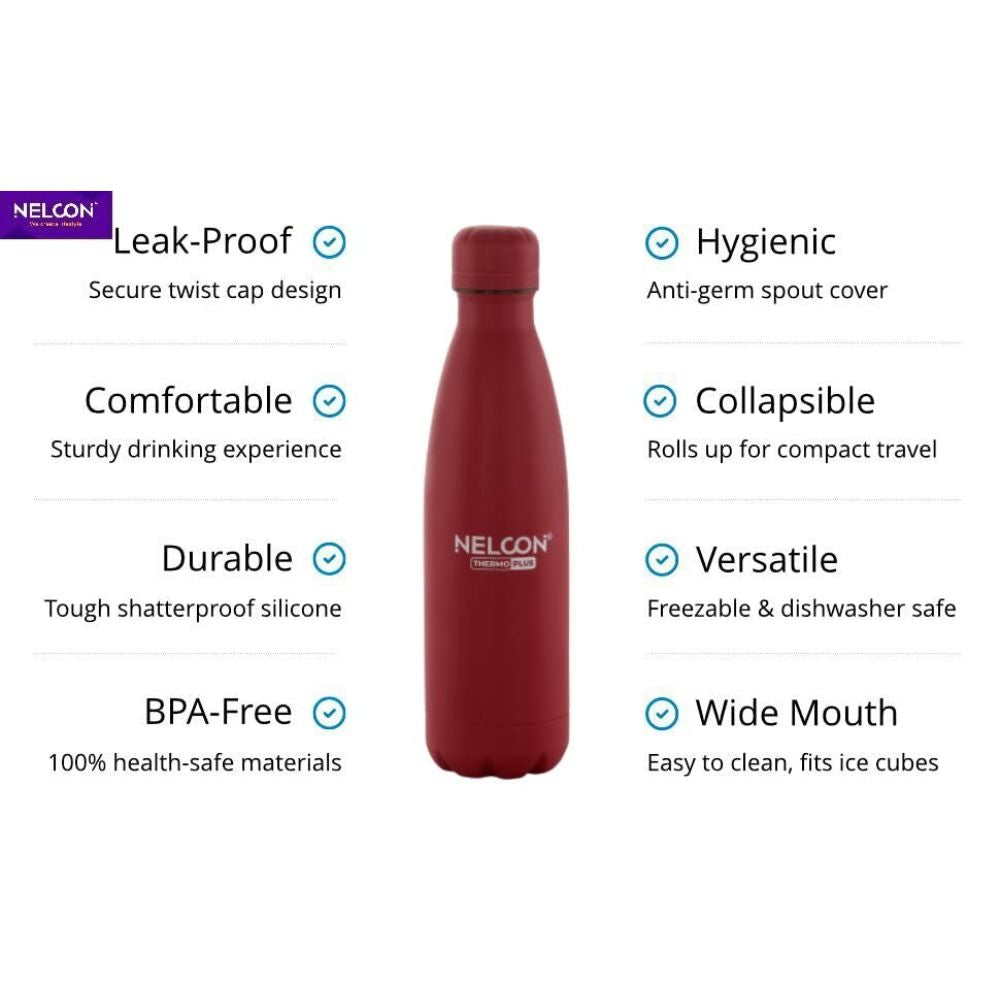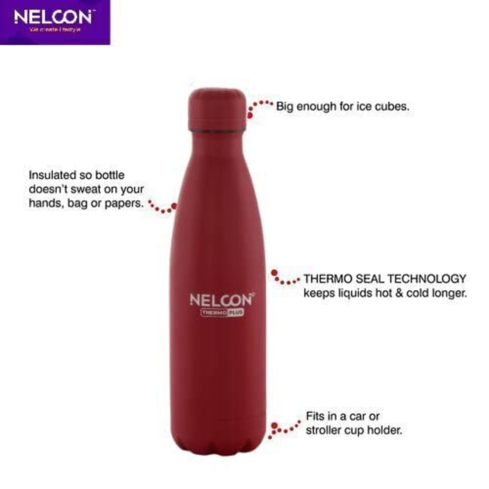 Nelcon Stainless Steel Cola Thermoplus 1000 ML Water Bottle | Dusky Red | 1 Pc