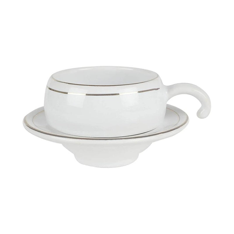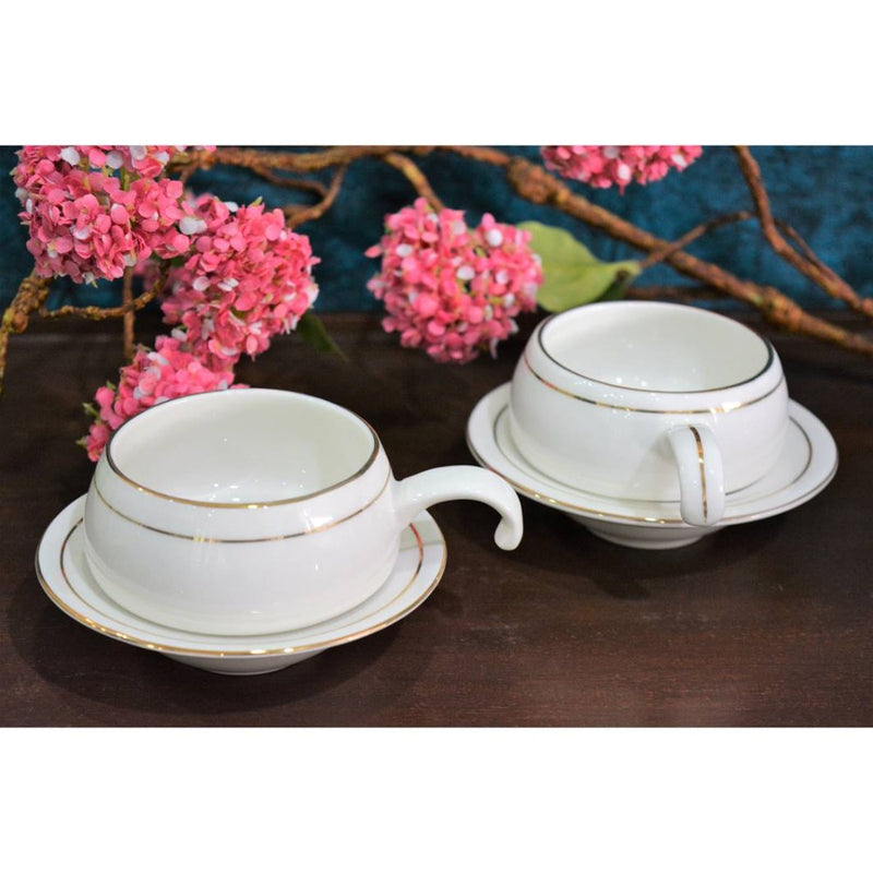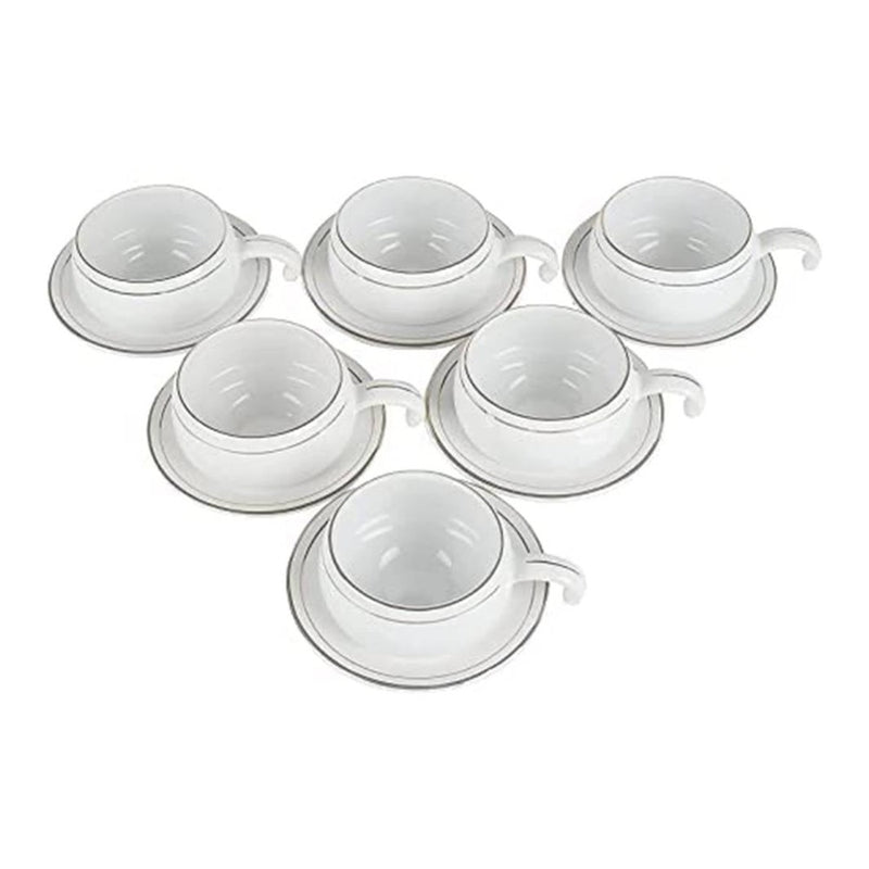 - This six-piece cup and saucer are set in complementary colors of White, embellished with Golden.
