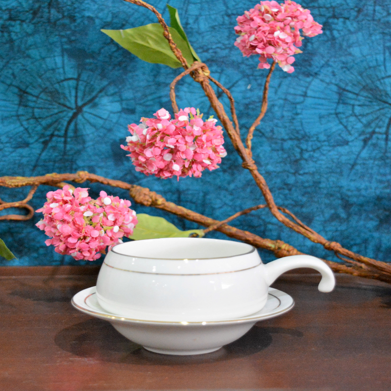 - This stunning, gold-rimmed lilliput cup with a matching saucer is the statement piece that will make moments like these special.