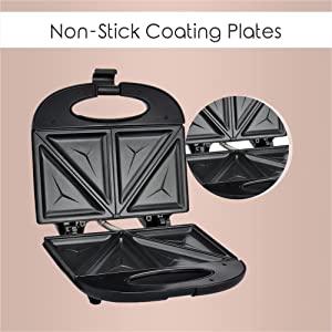 - NON-STICK & NON-TOXIC PLATES: The advanced nonstick coating on the grill plates is two times durable in this new sandwich maker. It automatically allows to removes the need for excess oil and butter during cooking which makes the cooking healthier. The product is safe and has a Non-Toxic coating which provides healthy and little fat food just in few minutes.