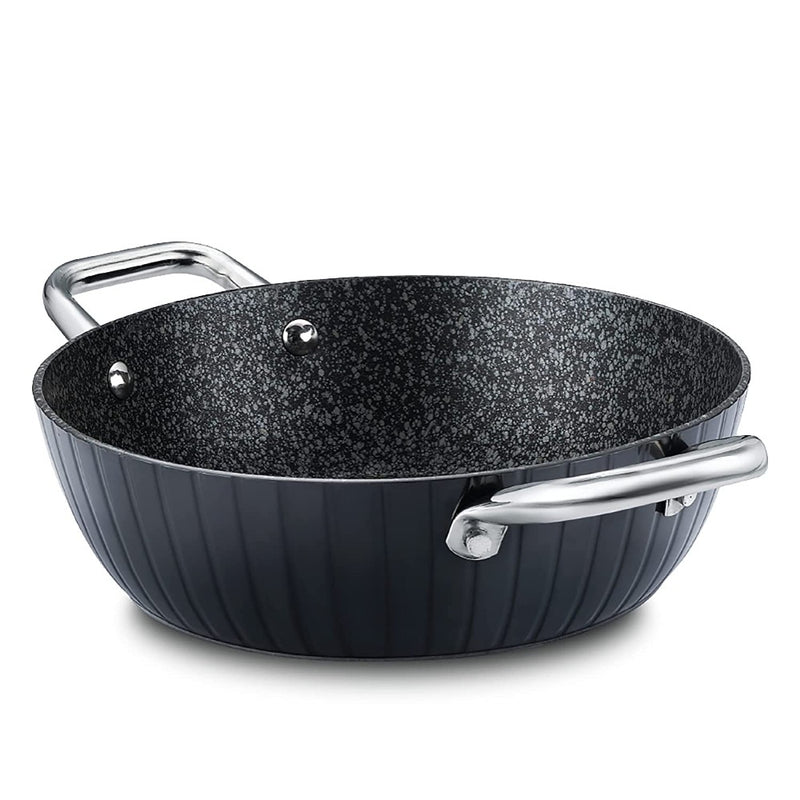 - STAINLESS STEEL- STAY COOL HANDLES: The comfortable grip of the stainless steel handles helps in handling the Kadai without any hassle.