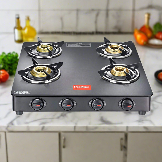 Prestige Magic GTMC 04 SQ Glass Top Gas stove, Black, 4 Burners