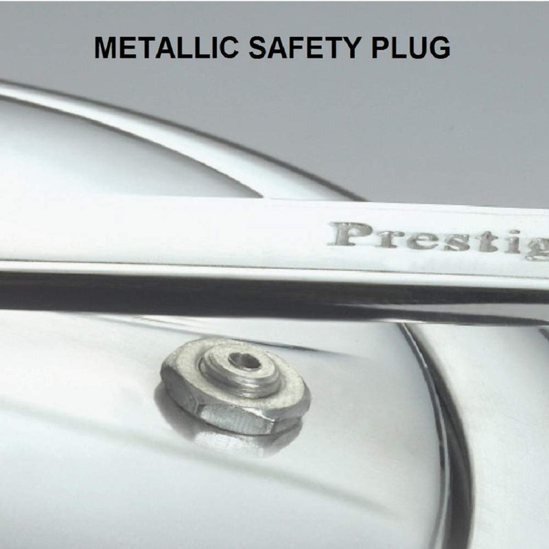 - METALLIC SAFETY PLUG: It is the 2nd level of safety feature top fitted to the lid, to release excess steam when pressure, rises beyond a safe level. Thus making it extremely safe to use.