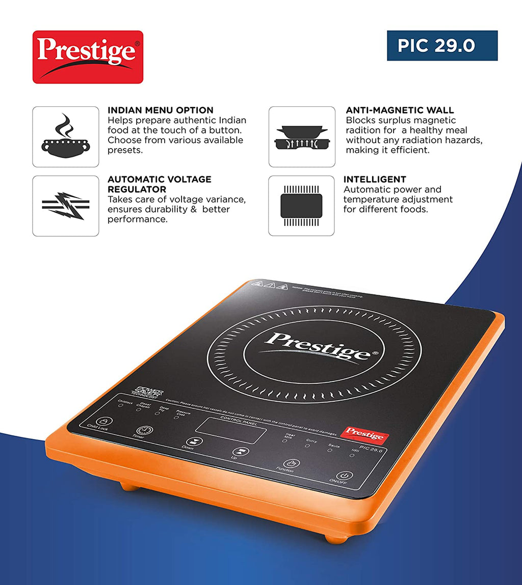 - The Colourful side of Performance and Functionality! Add convenience and Colour to your kitchen in one go with the new Prestige Induction Cooktop.