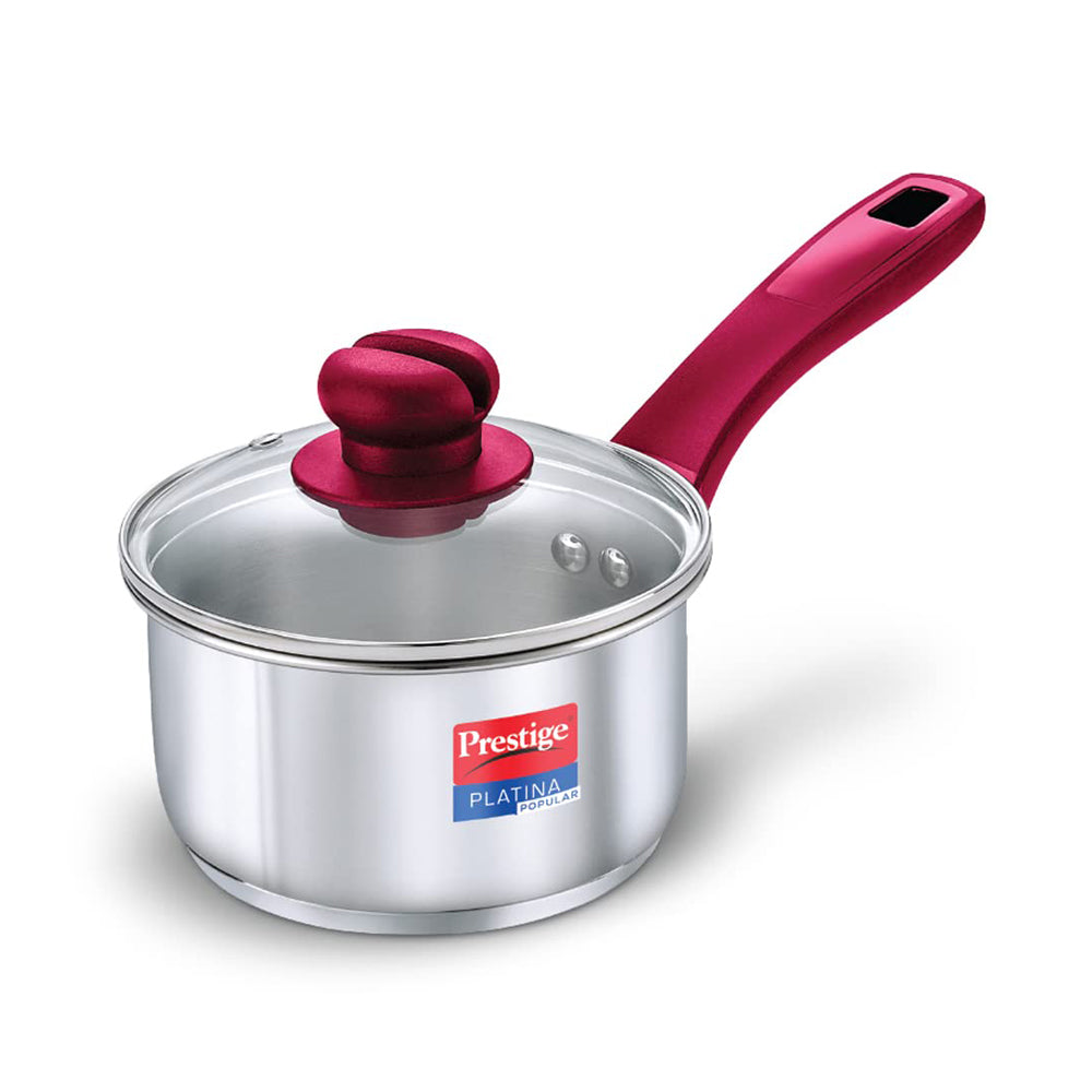 - Package Contents: 1 - Piece Platina Popular Stainless Steel Sauce Pan With Glass Lid, 1 - User Manual with Warranty Card