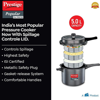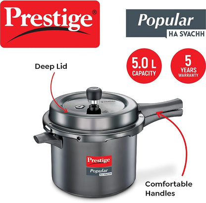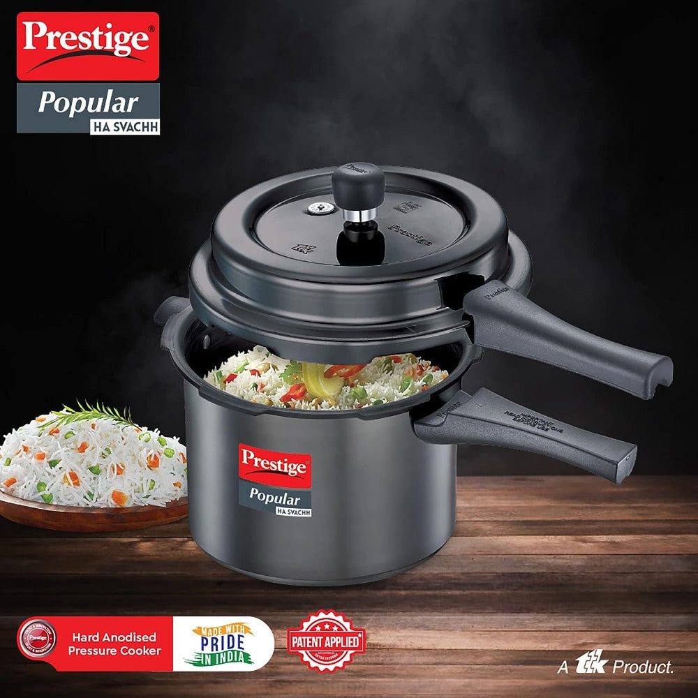 - The Prestige Popular Svachh Hard Anodised pressure cooker doesn't just help you dish out great food but looks great as well.