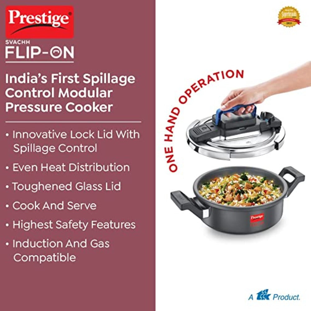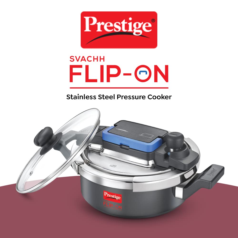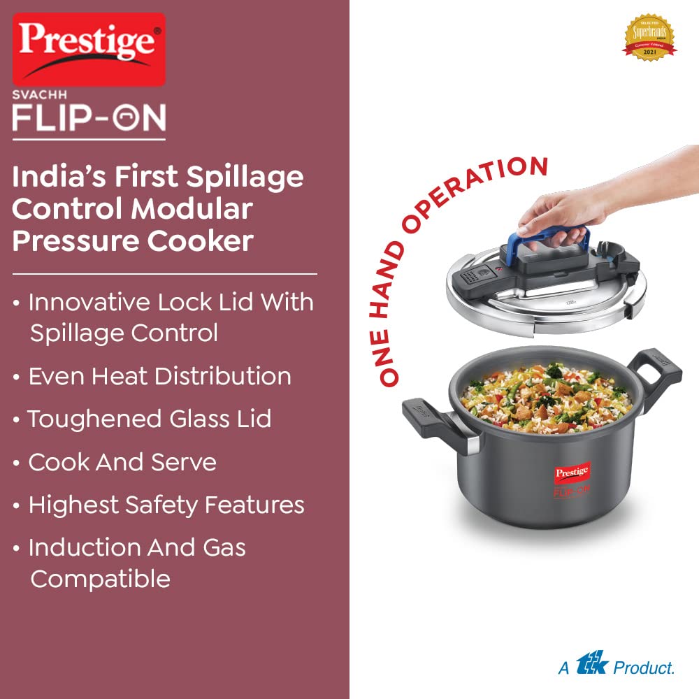 Prestige Svachh Flip-on Hard Anodised Pressure Cooker with Glass Lid | Gas & Induction Compatible | Black