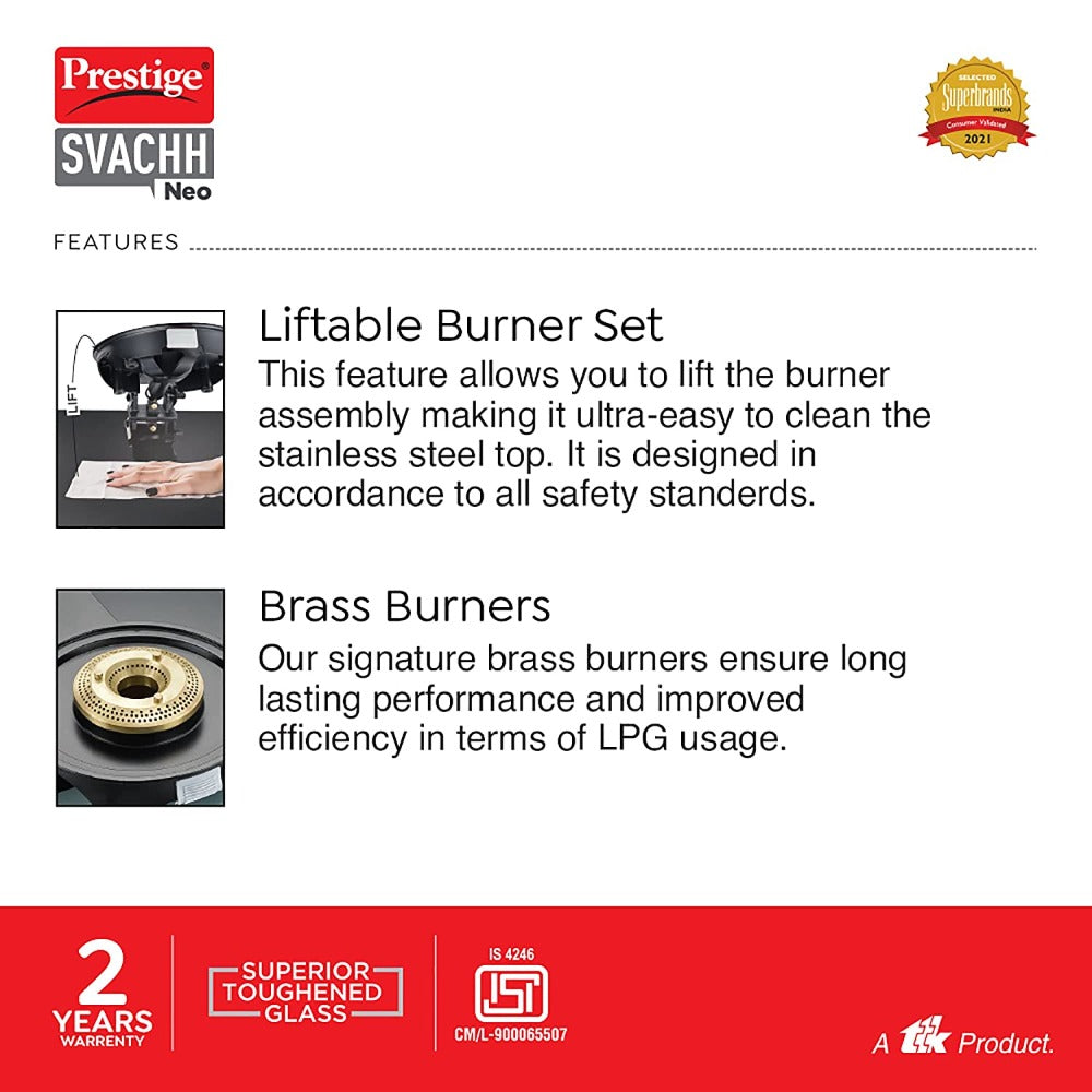 Prestige Svachh Neo Toughened Glass Top Gas Stove with Liftable Burners - 2