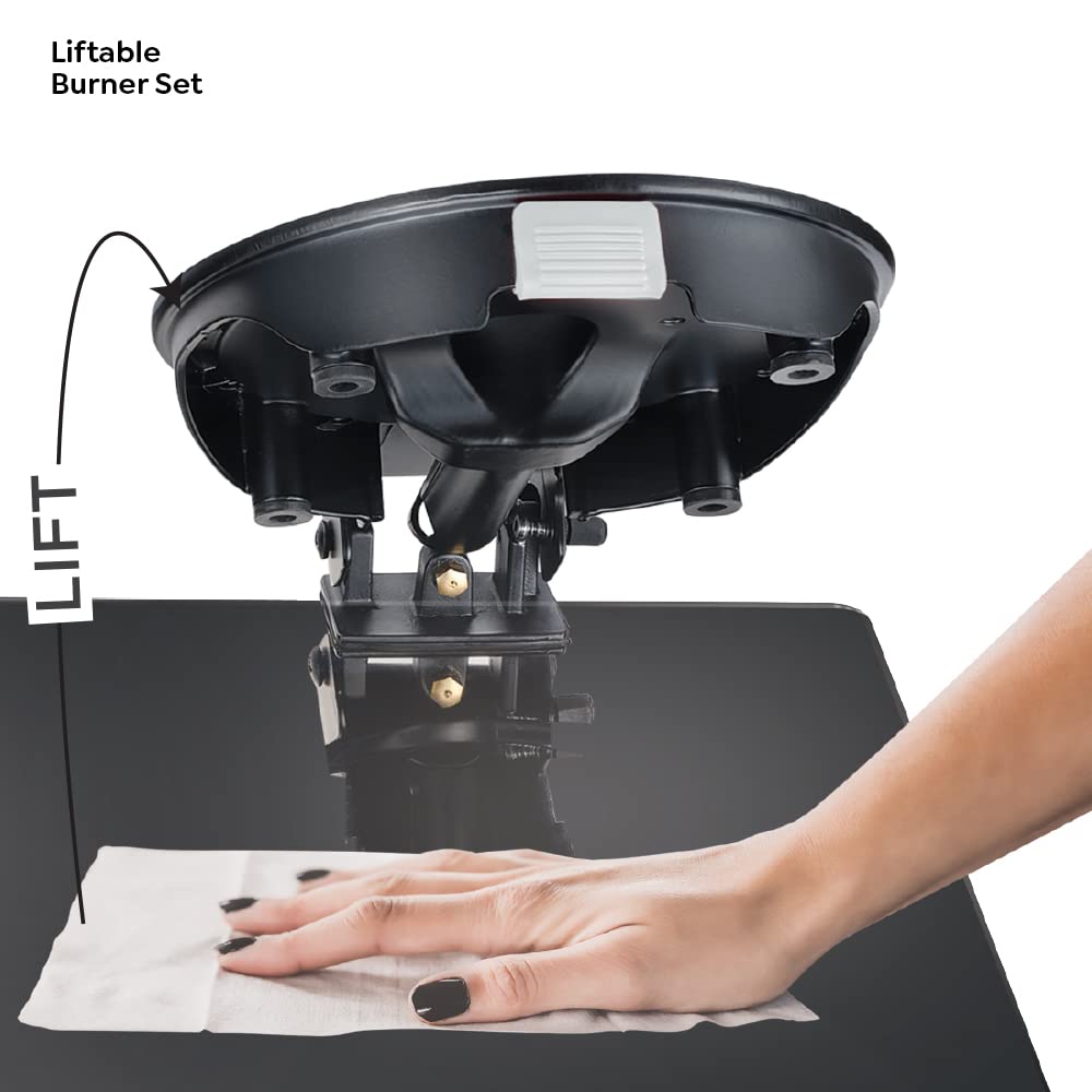 • LIFTABLE BURNER SET: This feature allows you to lift the burner assembly making it ultra-easy to clean the stainless steel top. It is designed by all safety standards.