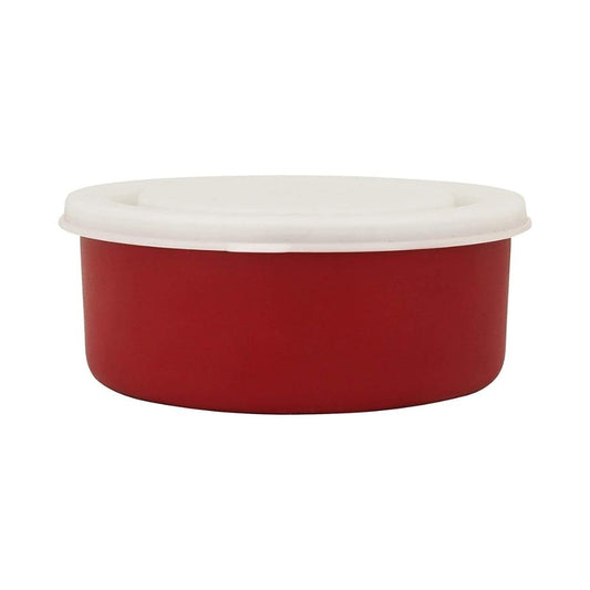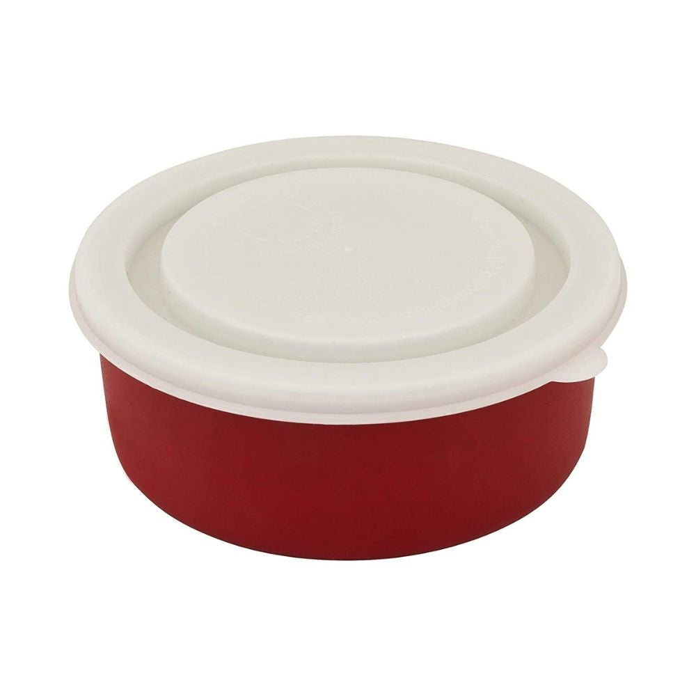 RasoiShop Stainless Steel Round Dabba with Plastic Lid | Microwave Safe | 1 Pc