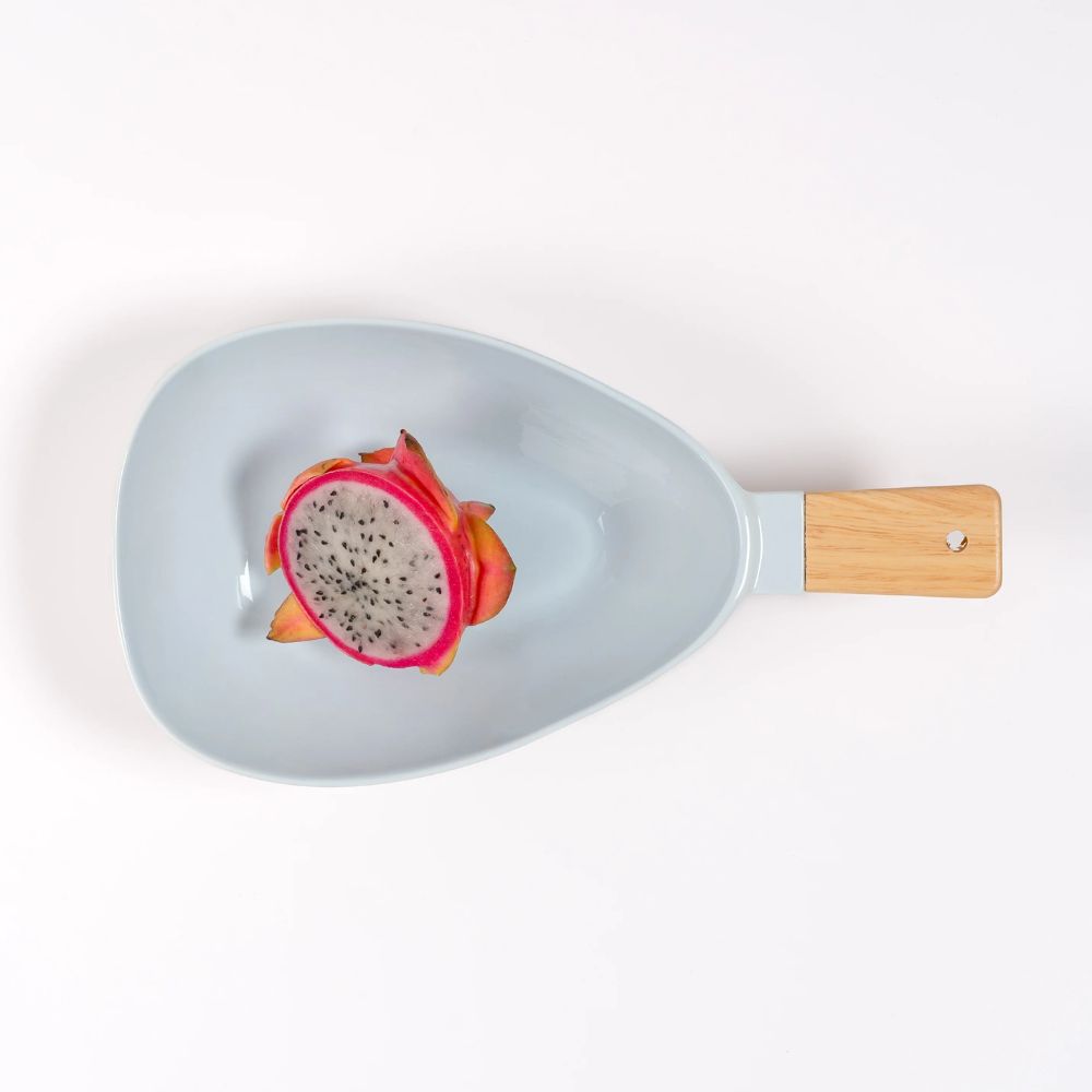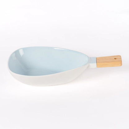 - Hand-painted in a pale blue hue, Lagoon is a deep dish with a sturdy wooden handle, it can be used to serve pasta, fried rice, Thai curry, or dals.
