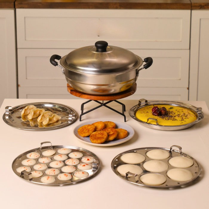 Softel Stainless Steel Multi Kadai, Induction Base with 6 Plates | Idli, Dhokla, Patra & Momos Maker