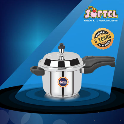 - The all-new Softel Stainless Steel pressure cooker - Designed and engineered to last longer, this stunning pressure cooker comes with loads of features that include a heavy-duty sandwich bottom base suitable for induction cooking as well as traditional cooking.