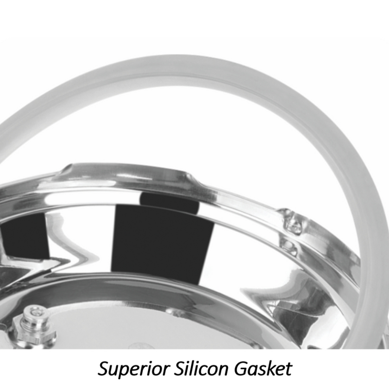 - SUPERIOR SILICON GASKET: Pressure cooker, in case there is any blockage of the vent tube, the gasket will bulge and steam will release through the slot. Thus making it extremely safe for usage.