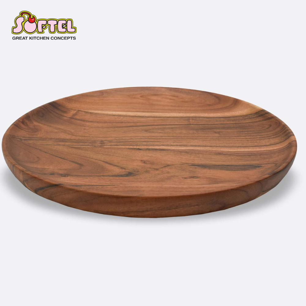 Softel Elegant Acacia Wood Serving Tray - Round, Brown, High-Quality, Easy to Clean Platter for Everyday Use