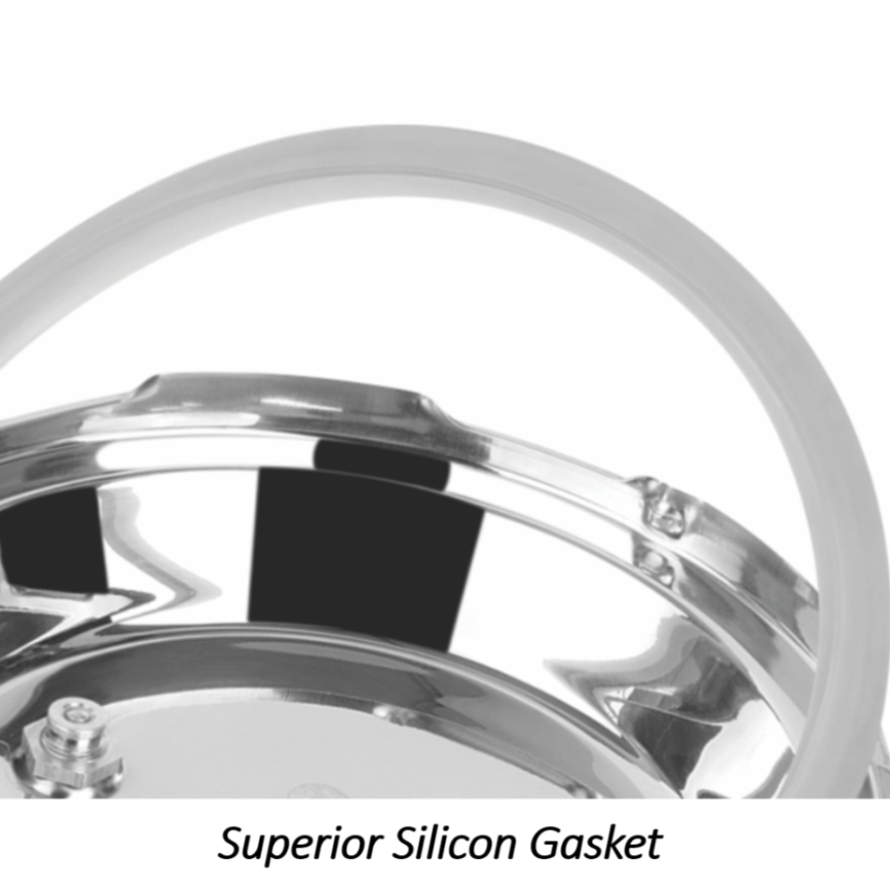 - SUPERIOR SILICON GASKET: Pressure cooker, in case there is any blockage of the vent tube, the gasket will bulge and steam will release through the slot. Thus making it extremely safe for usage.