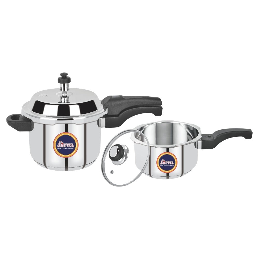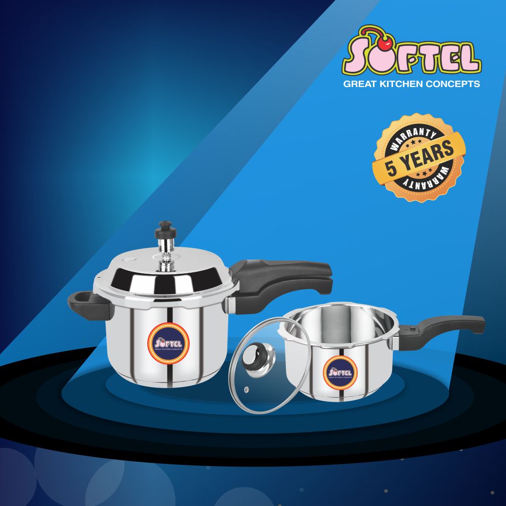- The all-new Softel Stainless Steel pressure cooker - Designed and engineered to last longer, this stunning pressure cooker comes with loads of features that include a heavy-duty sandwich bottom base suitable for induction cooking as well as traditional cooking.