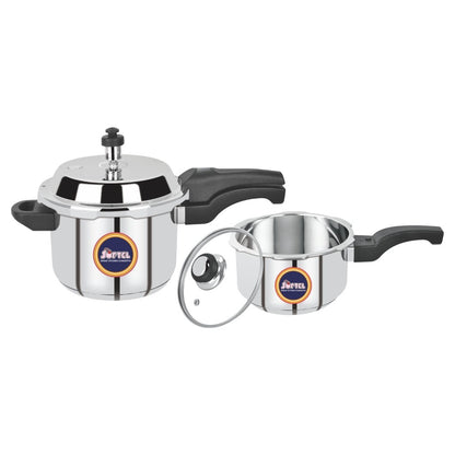 Softel Stainless Steel 2 + 3 Litre Combo Cooker with Stainless Steel Lid & Glass Lid | Gas & Induction Compatible | Silver