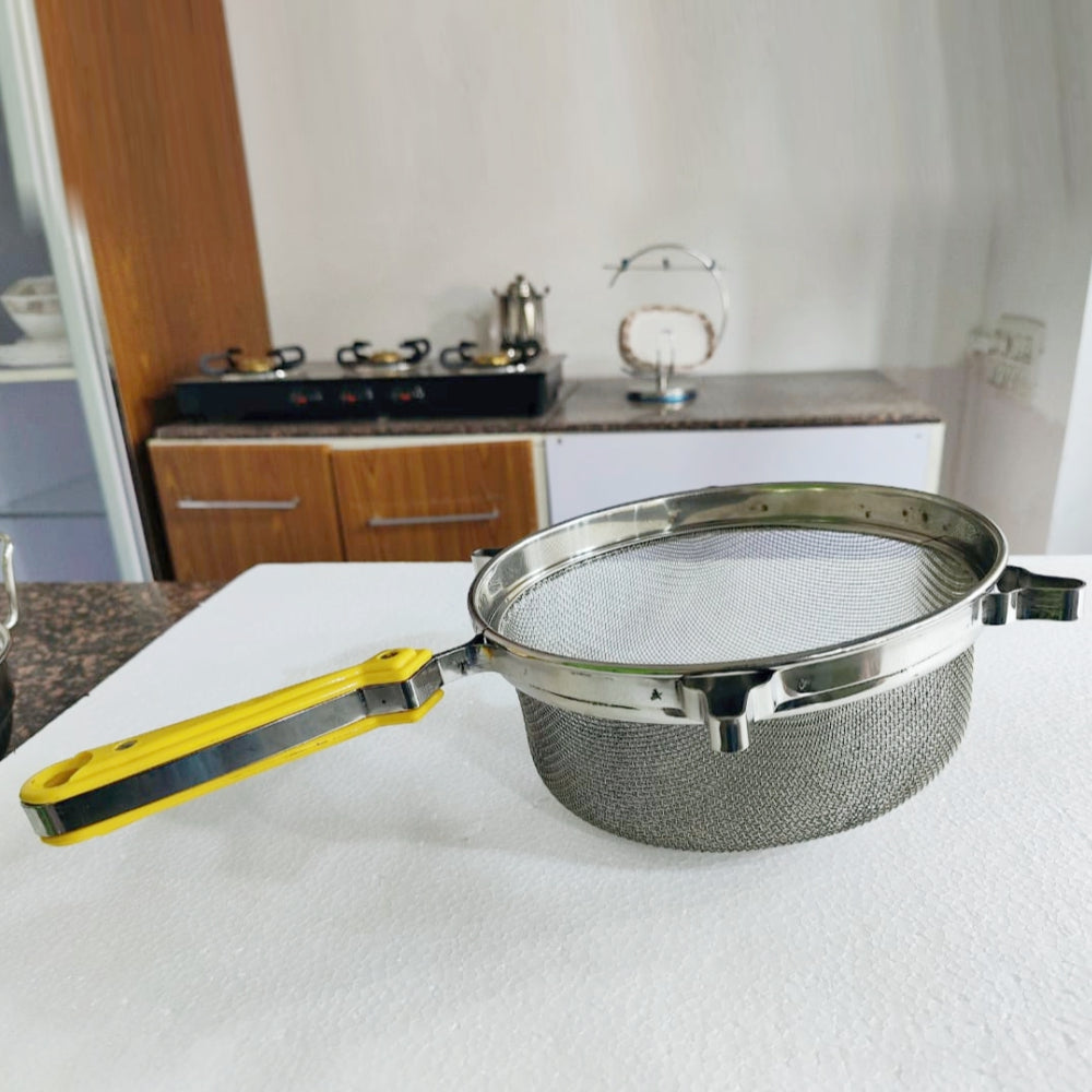 - The strainer is a very useful tool for the kitchen. The wire mesh has perfect size perforations to filter the liquids easily, Fruit juices and Soups or any other liquid food items can be strained.