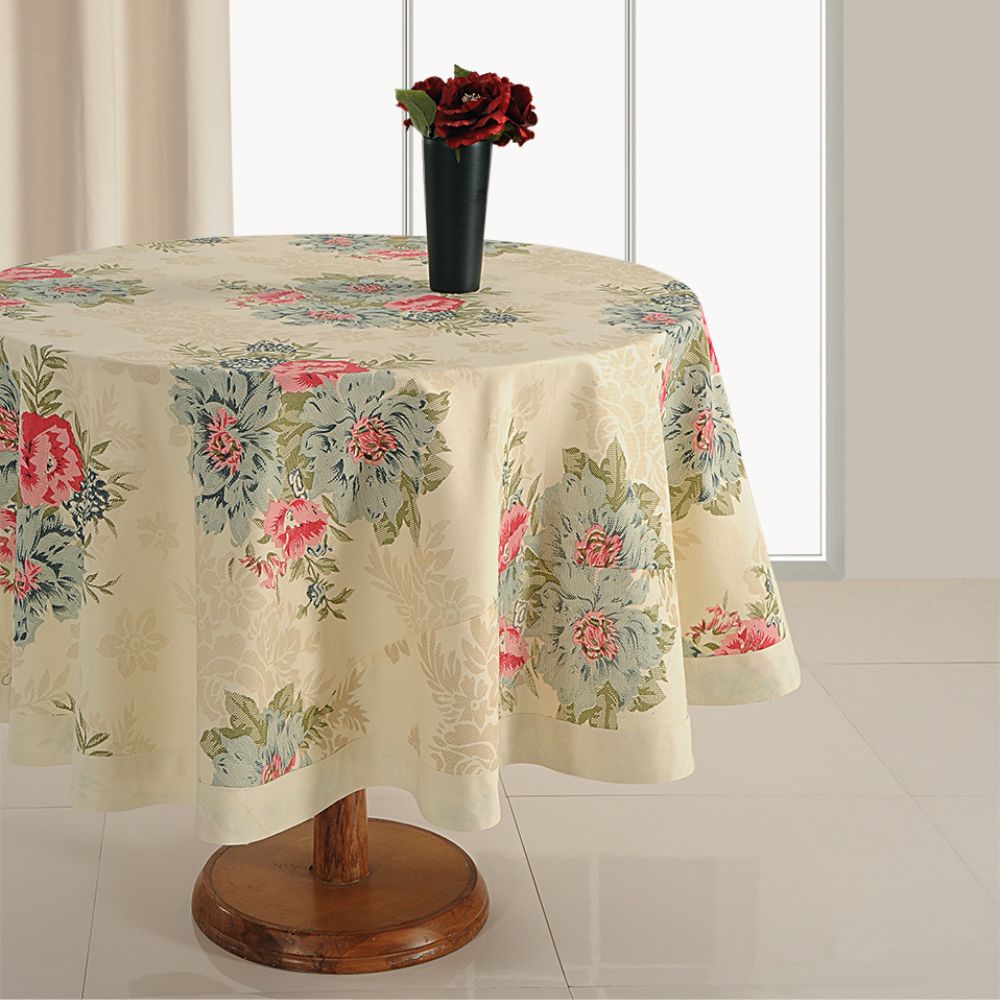 Swayam Floral Cream Printed Round Table Cover - 1986 - 2