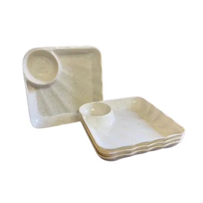 - INTEGRATED DESIGN: The square plate comes with a built-in dip section, making it perfect for serving snacks accompanied by dips, sauces, or chutneys.