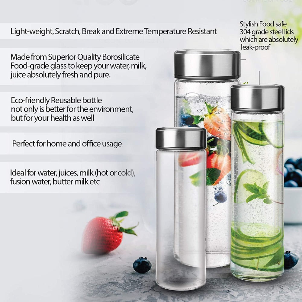 • Made from superior quality borosilicate food-grade glass to keep your water, milk, and juice absolutely fresh and pure.